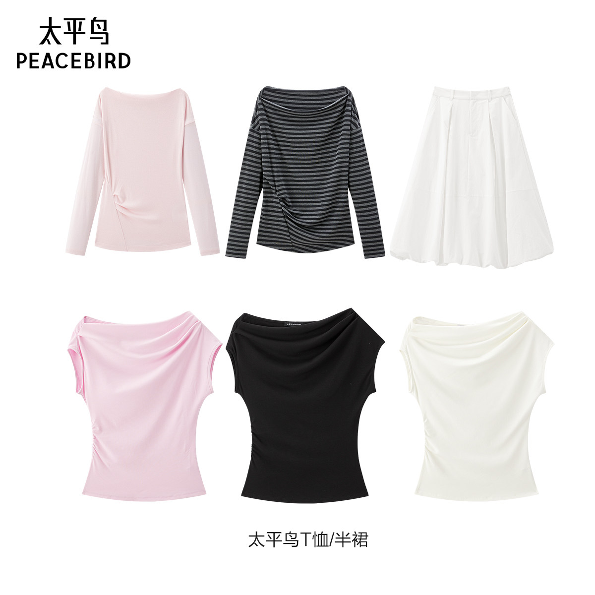 【达播专属】太平鸟斜肩短袖T恤长袖T恤半身裙