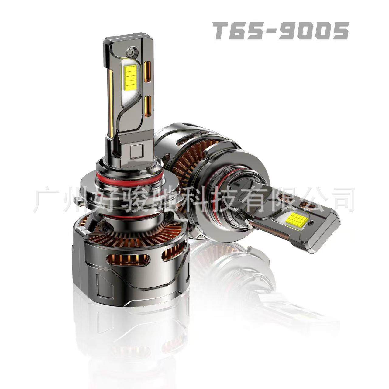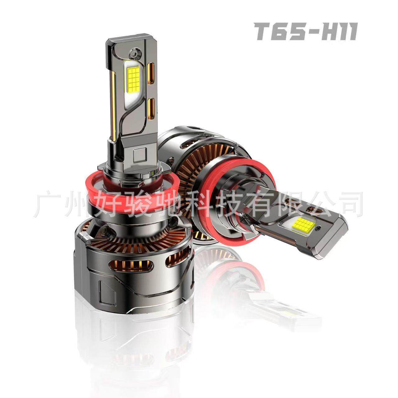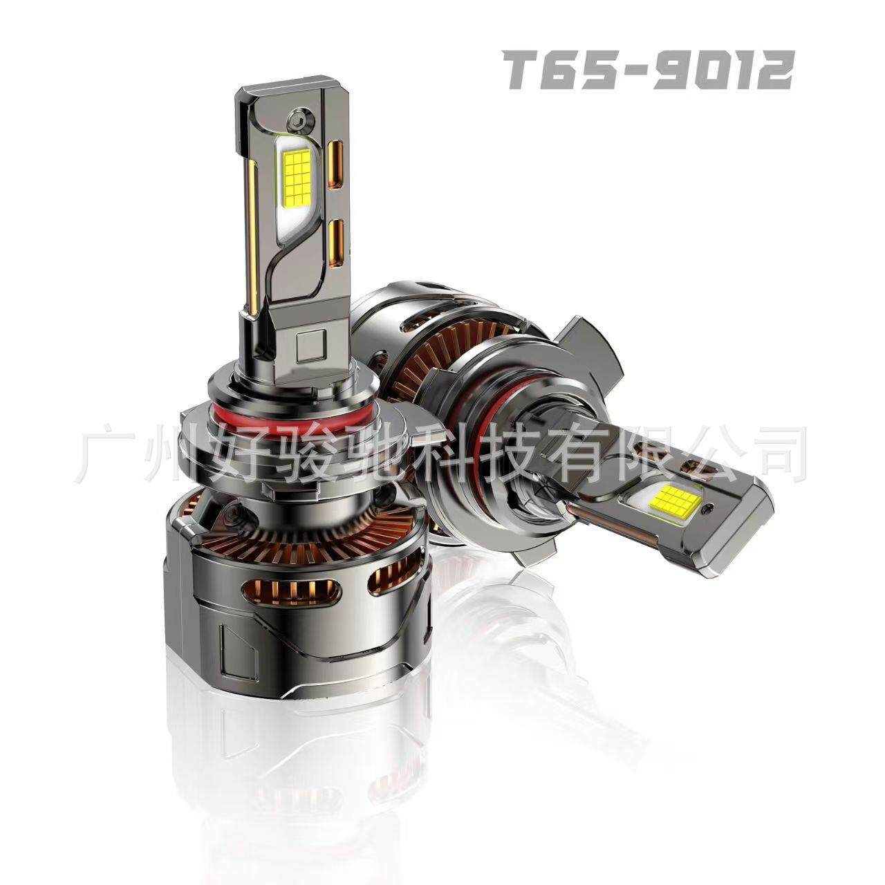 汽车前大灯H1H4H7大功率T65解码性能怪兽高亮白光双铜管鳍片65W