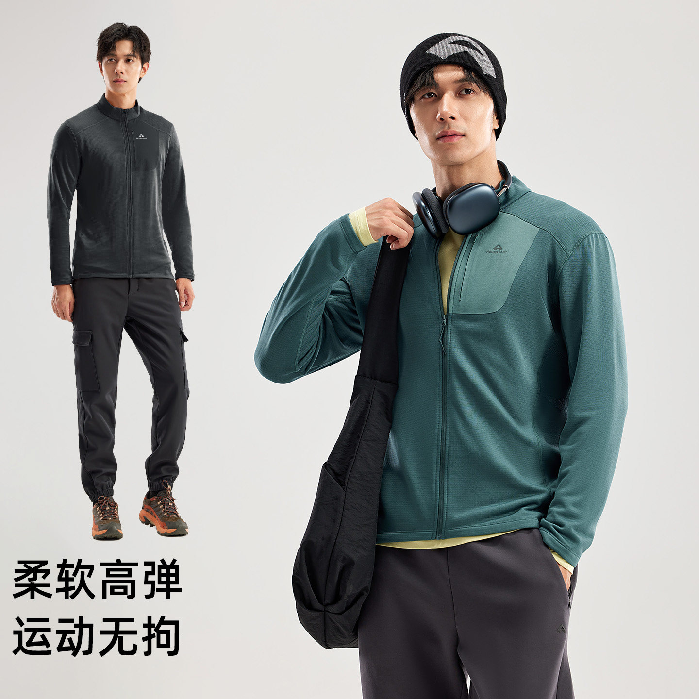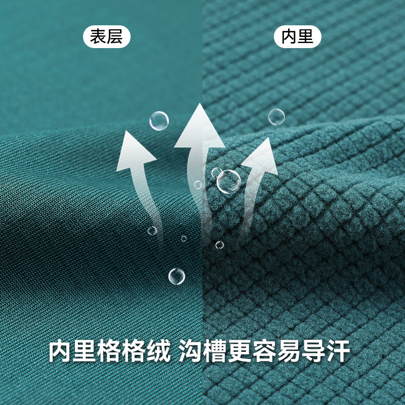 拓路者【格格绒】轻量抓绒衣男秋季华夫格拉链开衫立领运动绒外套