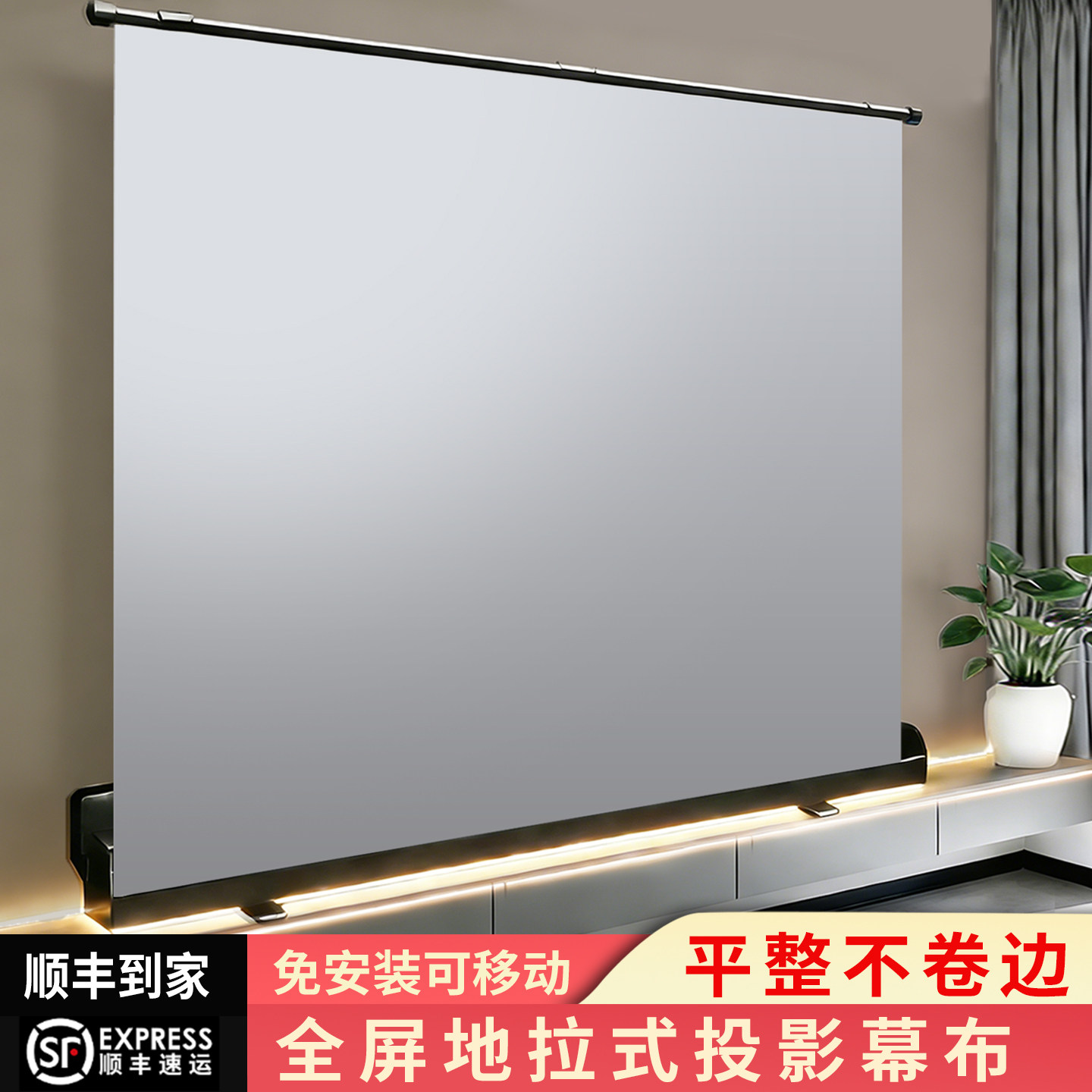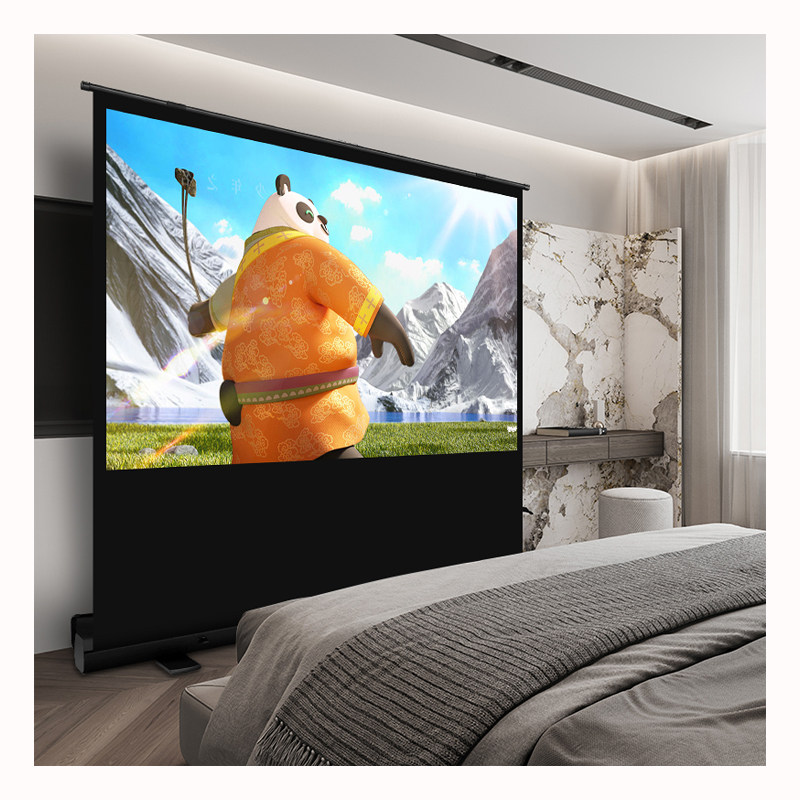 地拉式投影幕布家用地拉幕布100寸投影仪布幕便携免打孔户外可移动地面支架8手拉升降便携式落地露营地升幕布