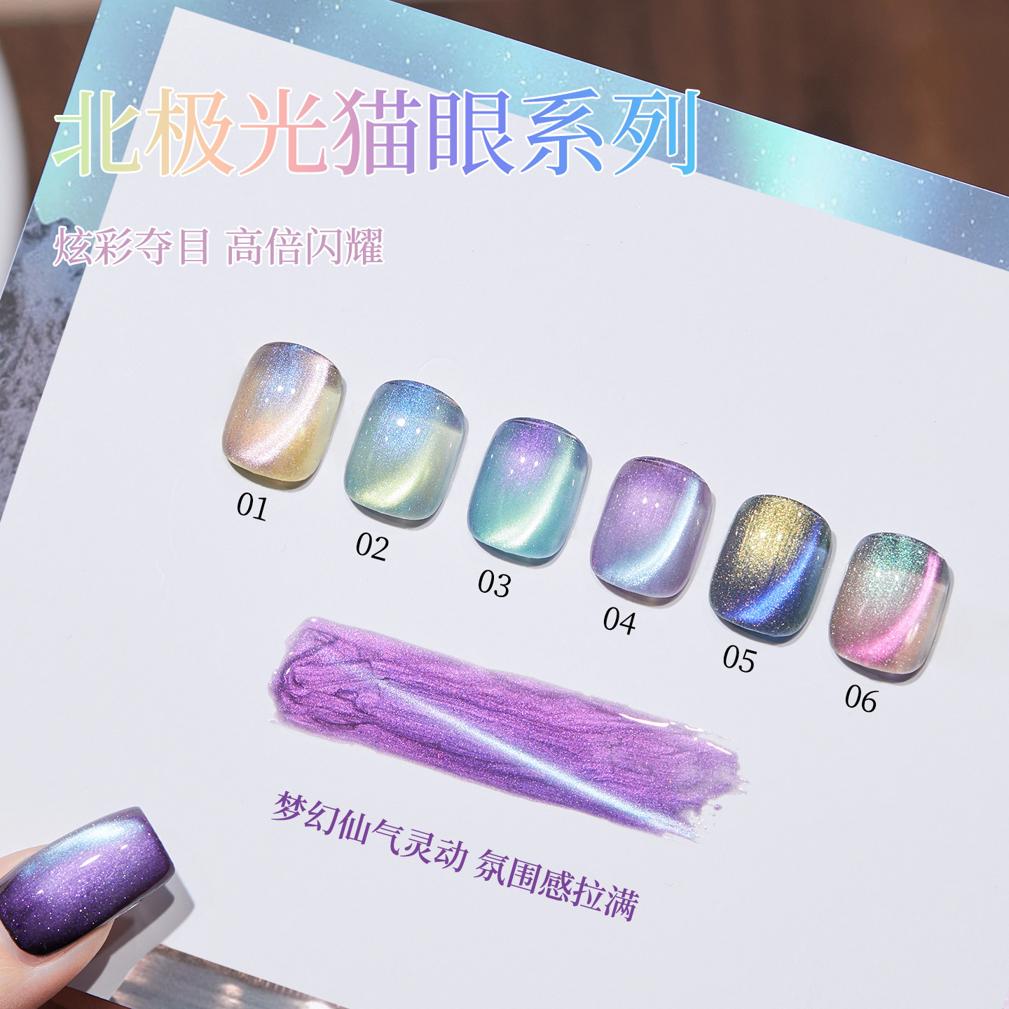 宝诗曼北极之光猫眼指甲油胶2025年新款爆闪七彩玻璃珠晶石猫眼胶