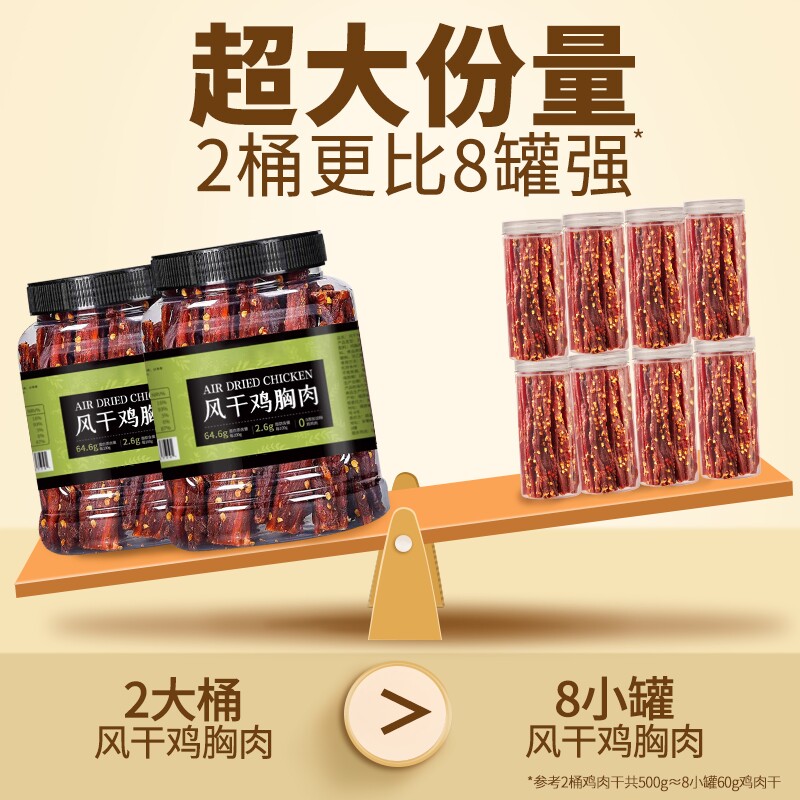 风干鸡肉干大桶鸡胸肉条减低零食卡脂期解馋即食充饥休闲食品耐嚼