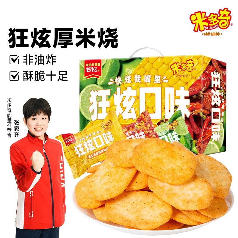 米多奇狂炫口味厚米烧50包黄瓜青柠玉米芝士龙虾味休闲解馋小零食