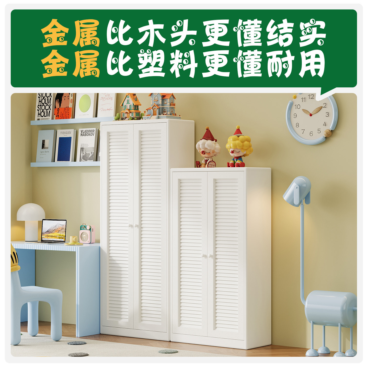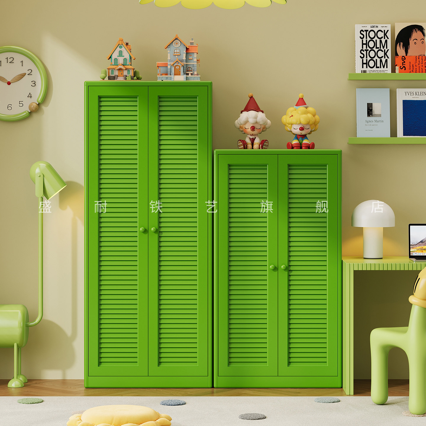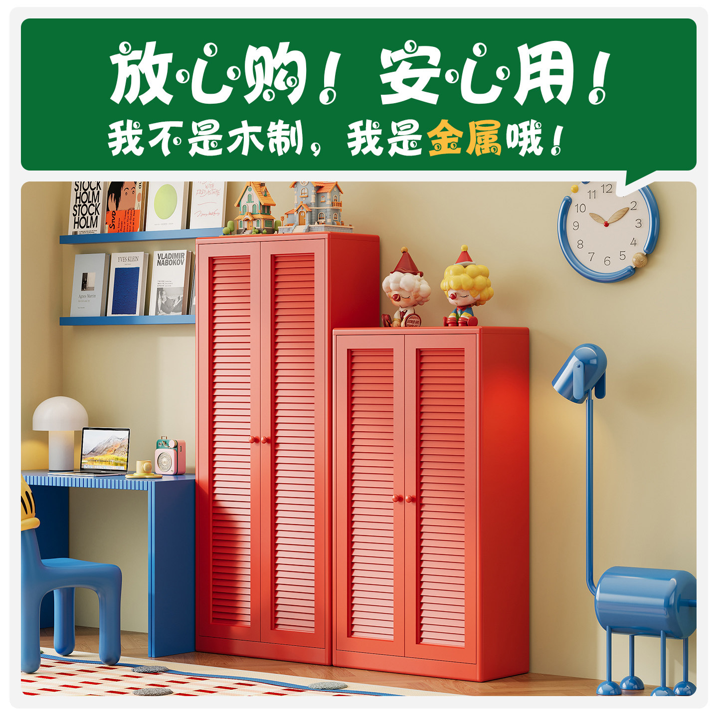 中古风铁艺儿童书柜钢制带门防尘储物柜家用客厅卧室收纳柜置物柜