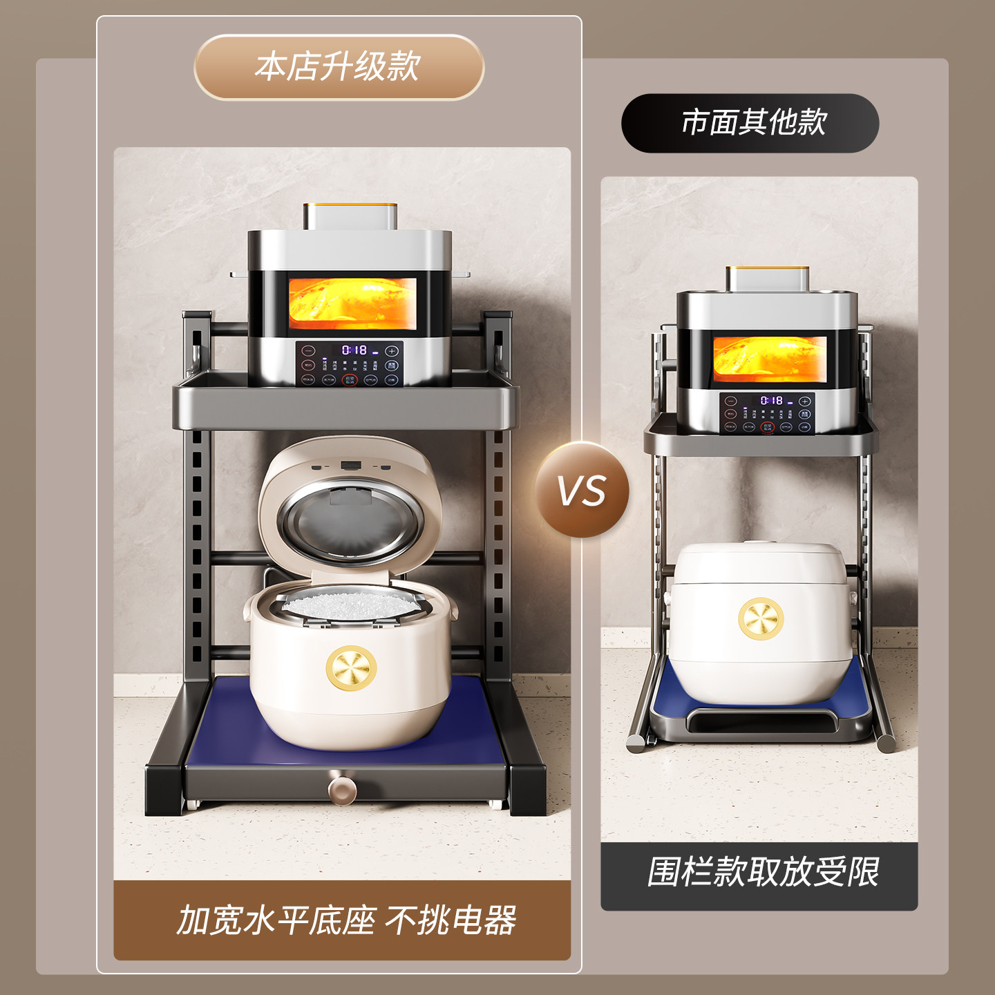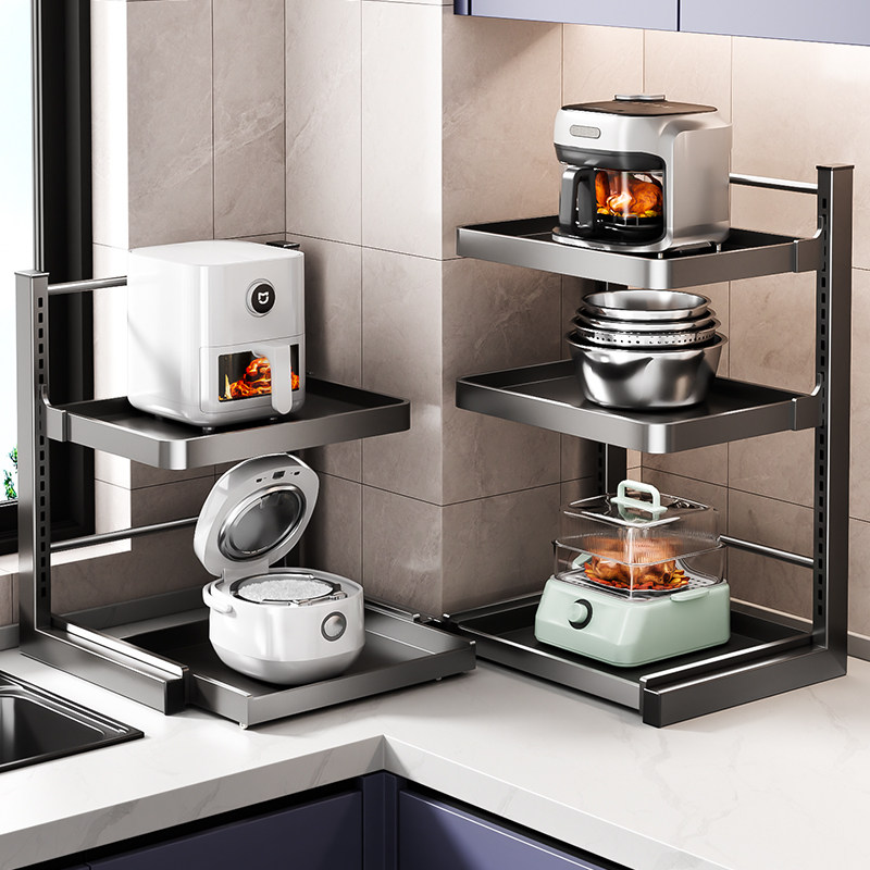 可抽拉厨房电饭煲置物架多功能微波炉收纳架多层台面烤箱架子锅具