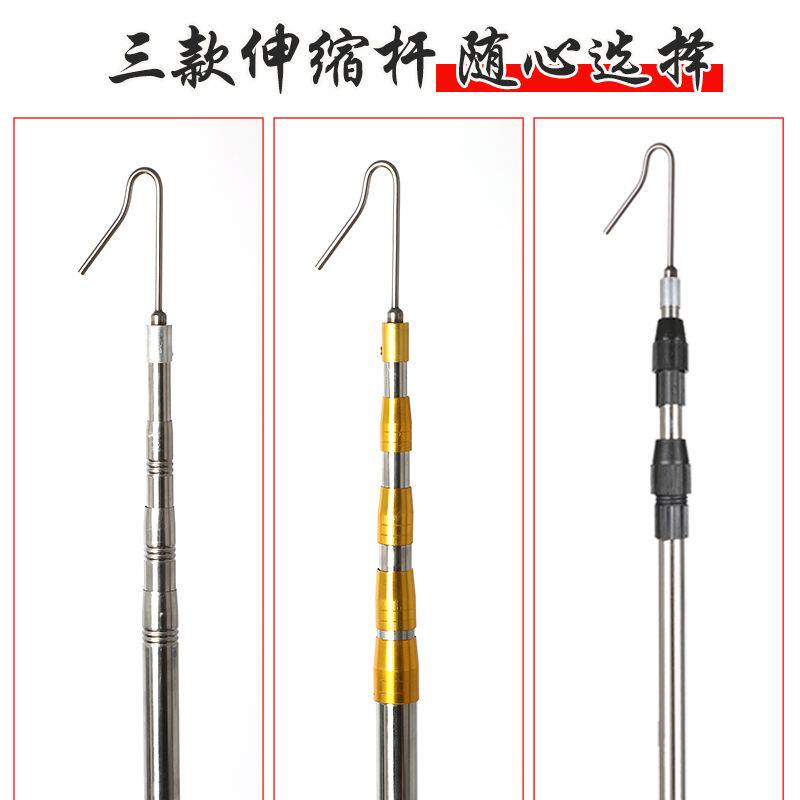 伸缩杆不锈钢抄网杆高空摘果杆抄网竿槐花香椿杆钓鱼割草香椿钩子