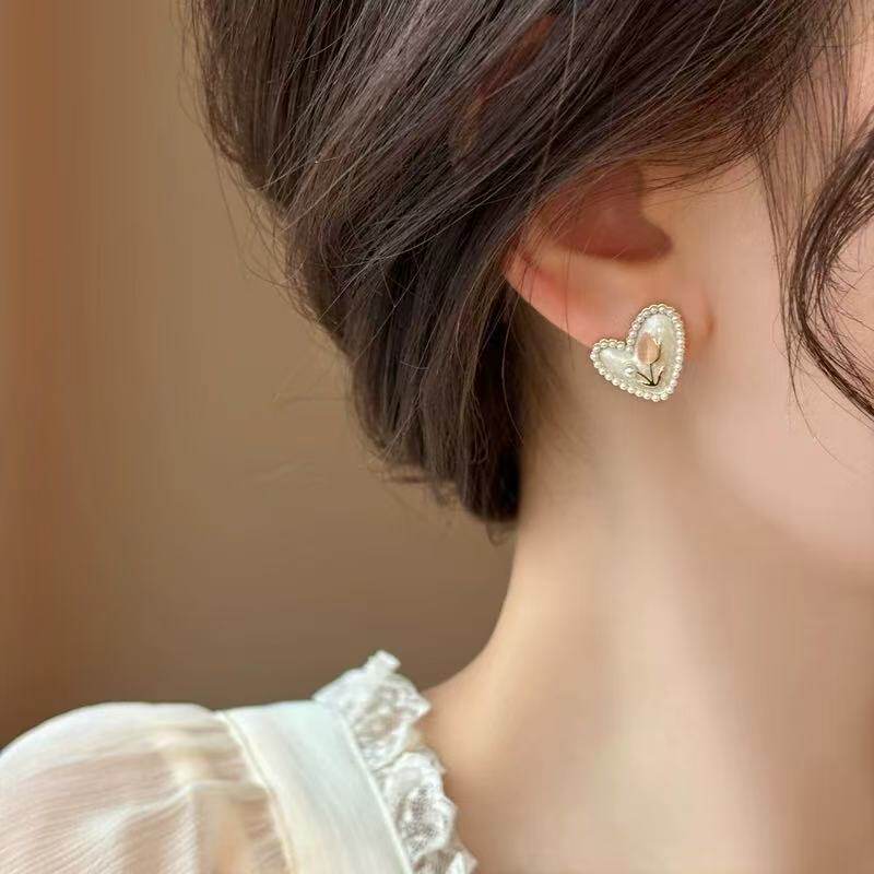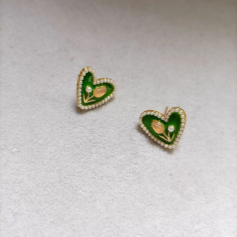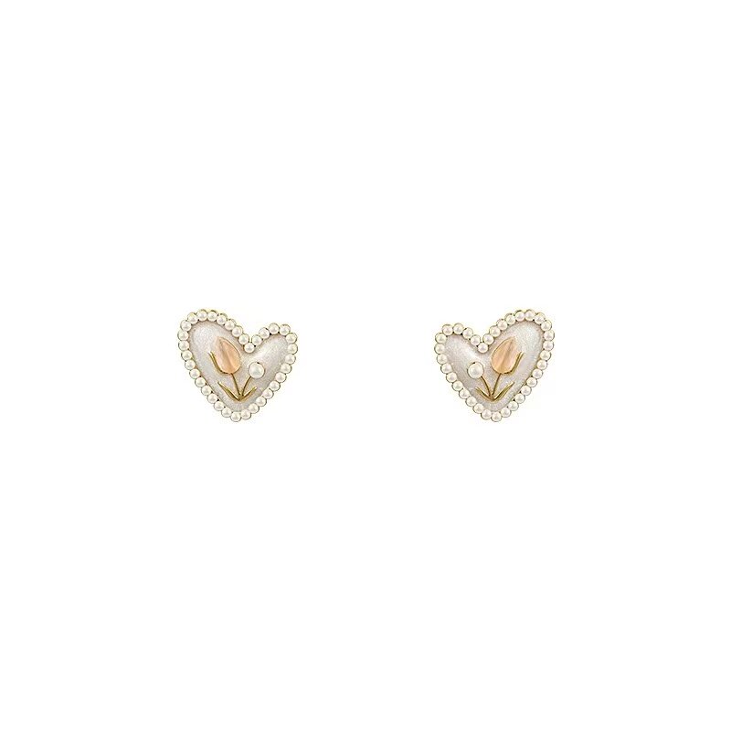 莫奈花园油画风爱心花朵珍珠耳环时尚气质耳钉法式甜美小清新耳饰