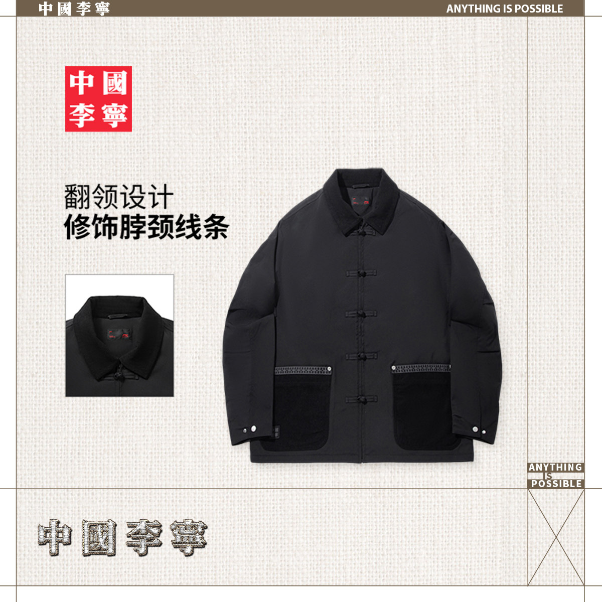 中国李宁棉服男士官方新款男装上衣冬季翻领宽松运动服