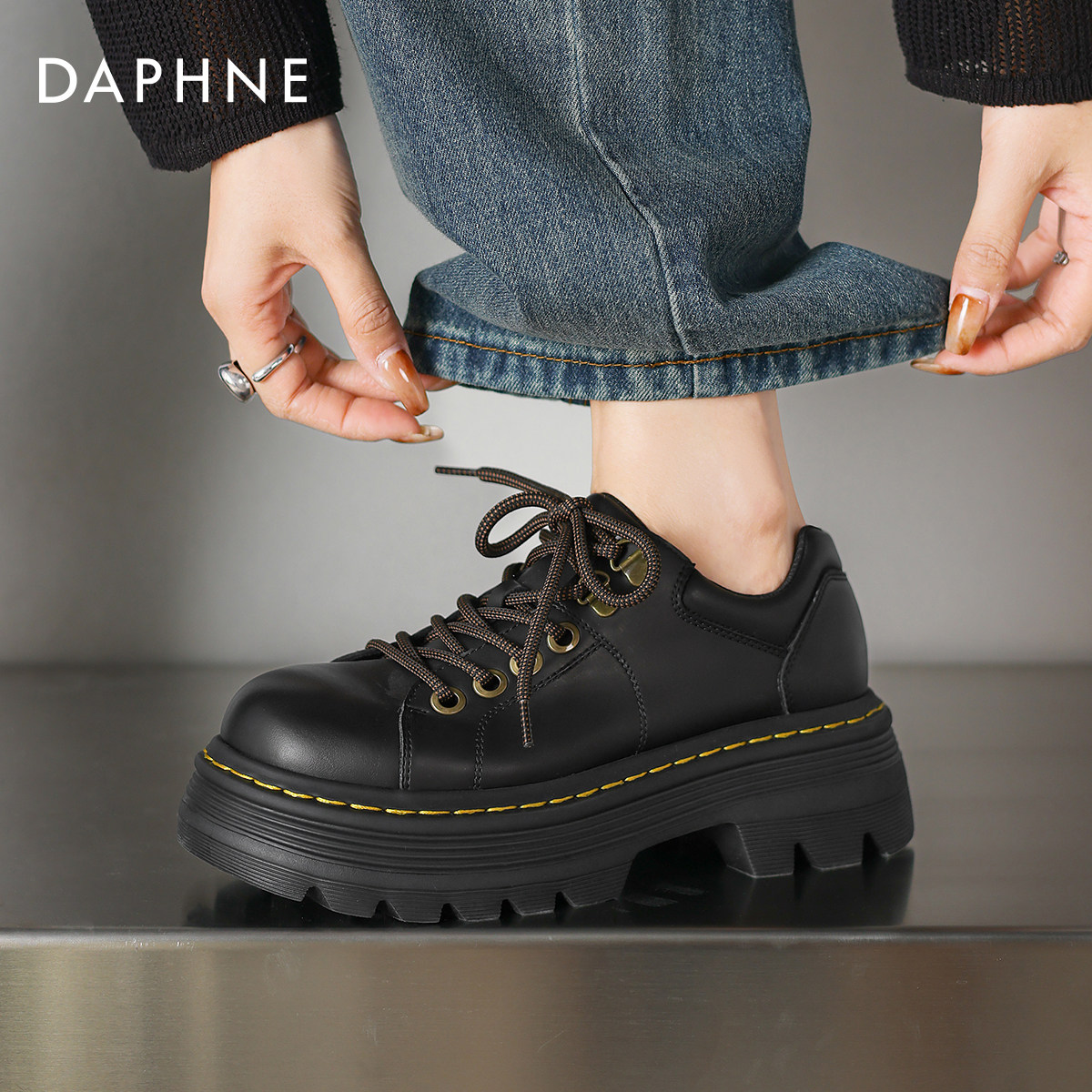 达芙妮厚底乐福鞋女2026新款单鞋英伦风皮鞋女款黑色布洛克德比鞋