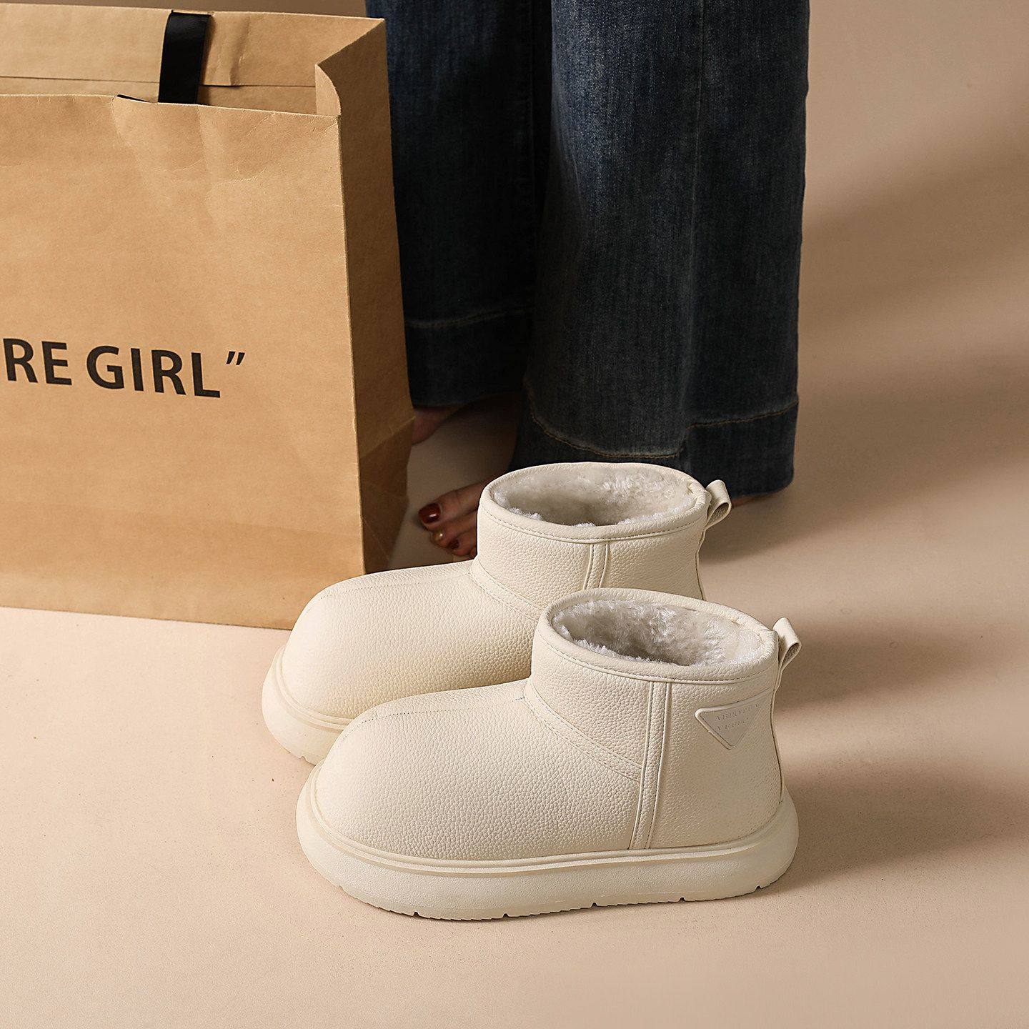 miu家厚底雪地靴女冬季真皮短靴羊毛侧拉链增高厚底加绒毛毛棉鞋