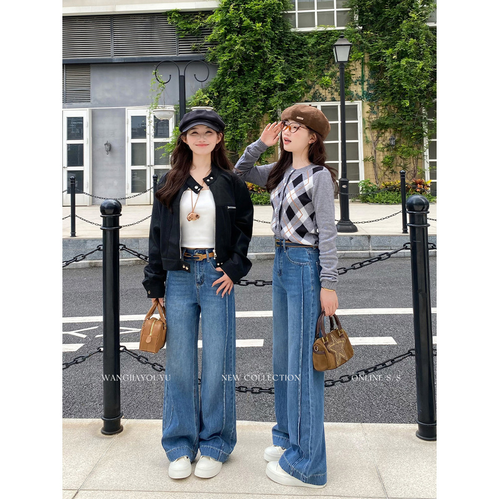 王家有鱼【大姚小姚】小个子宽松阔腿裤女2025新款牛仔裤爆款裤子