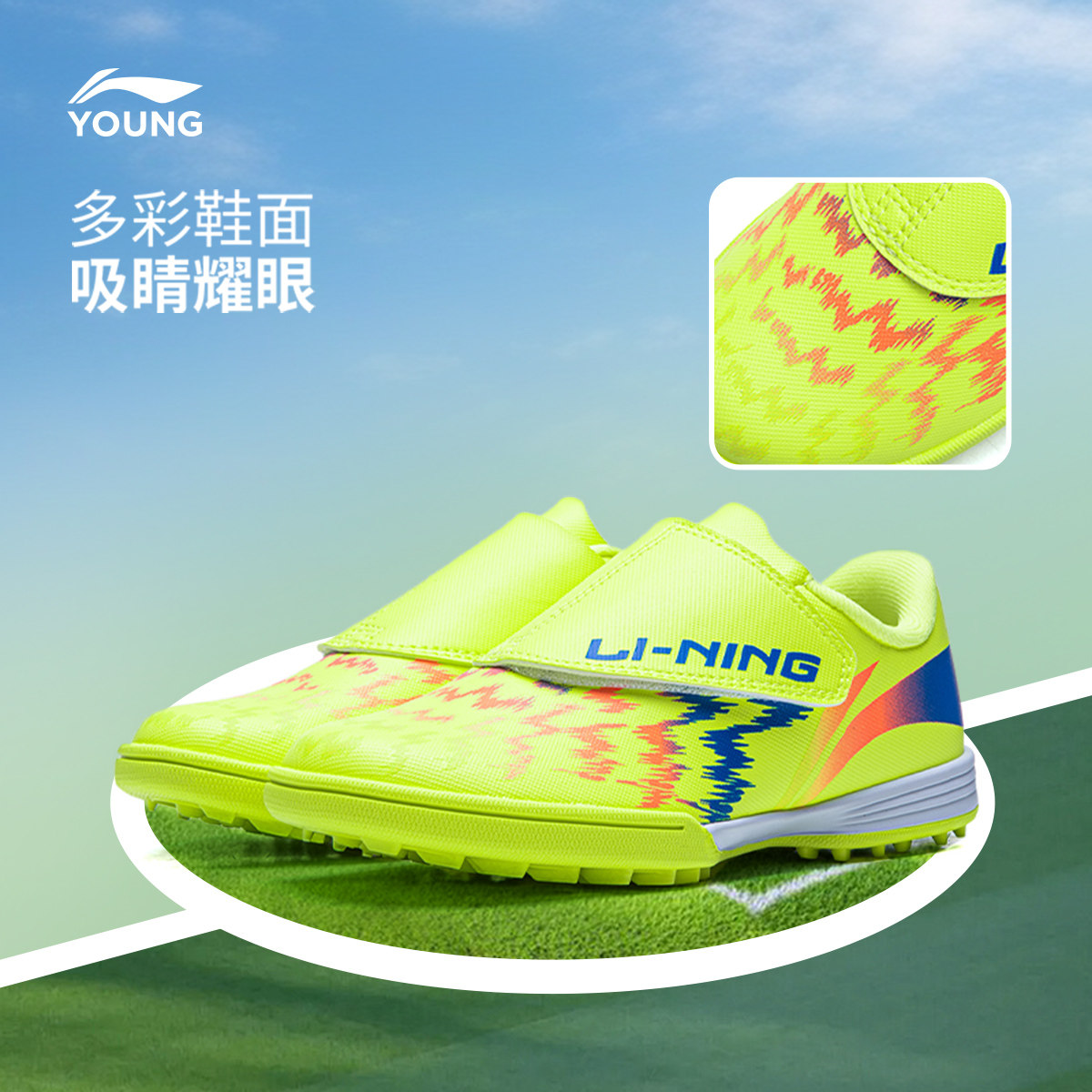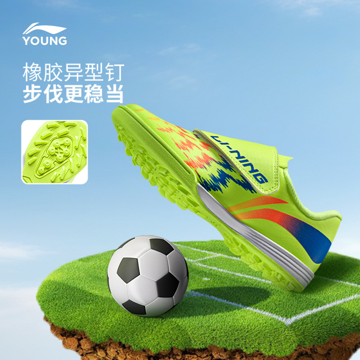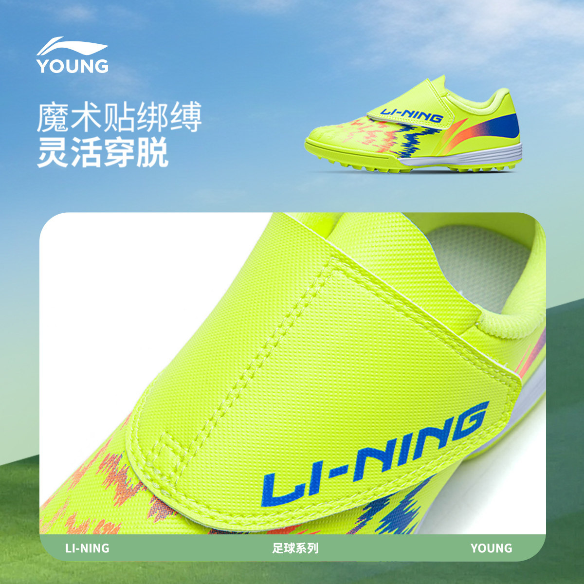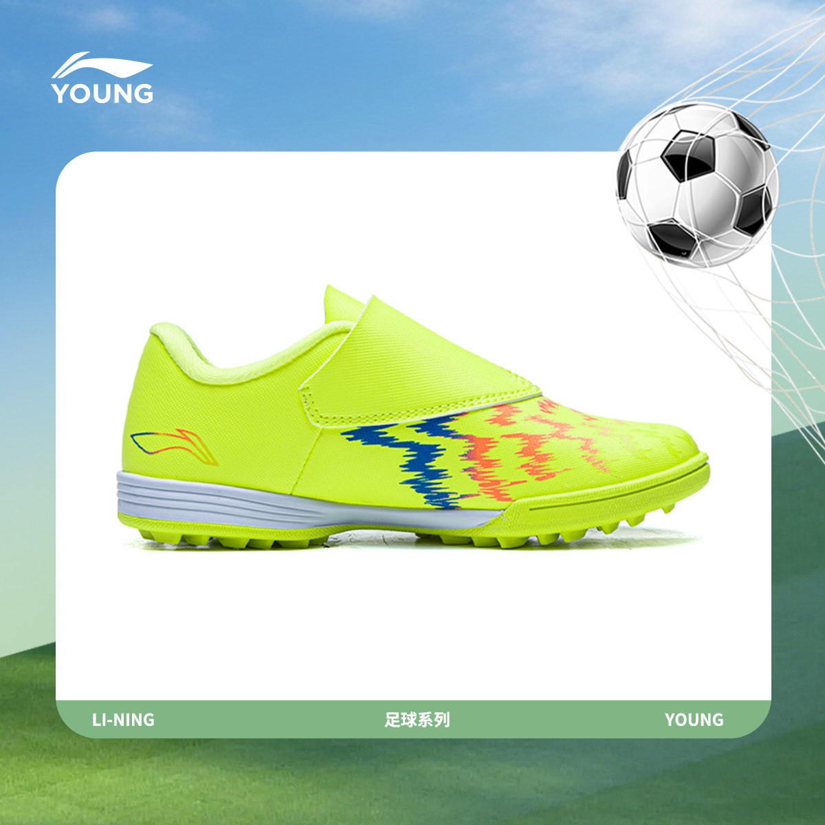 李宁童鞋足球鞋男童鞋小童疾影4 KIDS圆头鞋子低帮运动鞋YKGW032