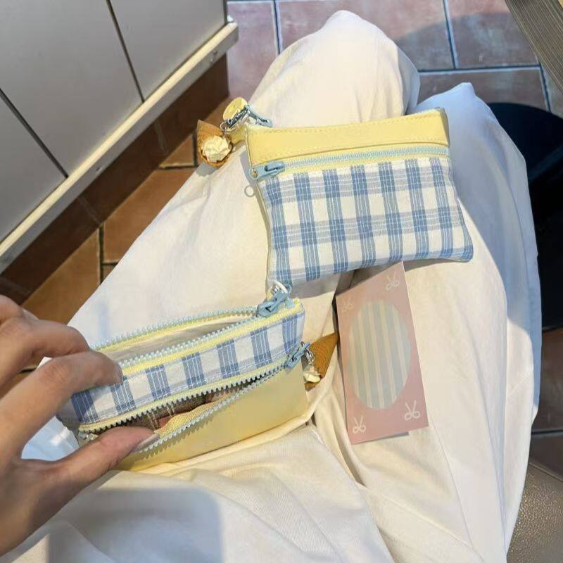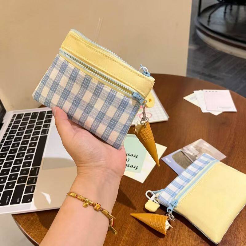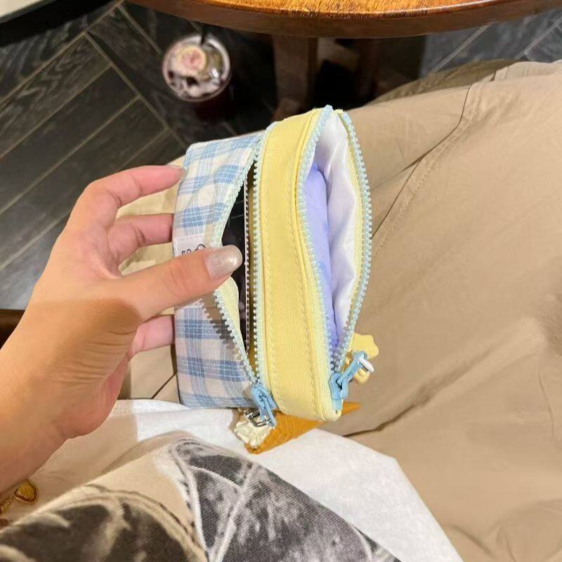可爱布艺零钱包撞色拼接双层迷你化妆包ccd收纳包卡包证件包袋