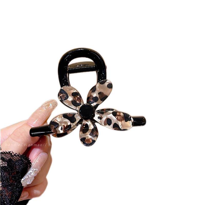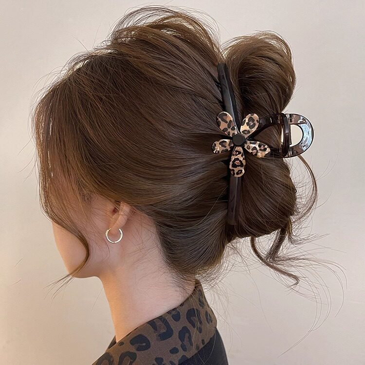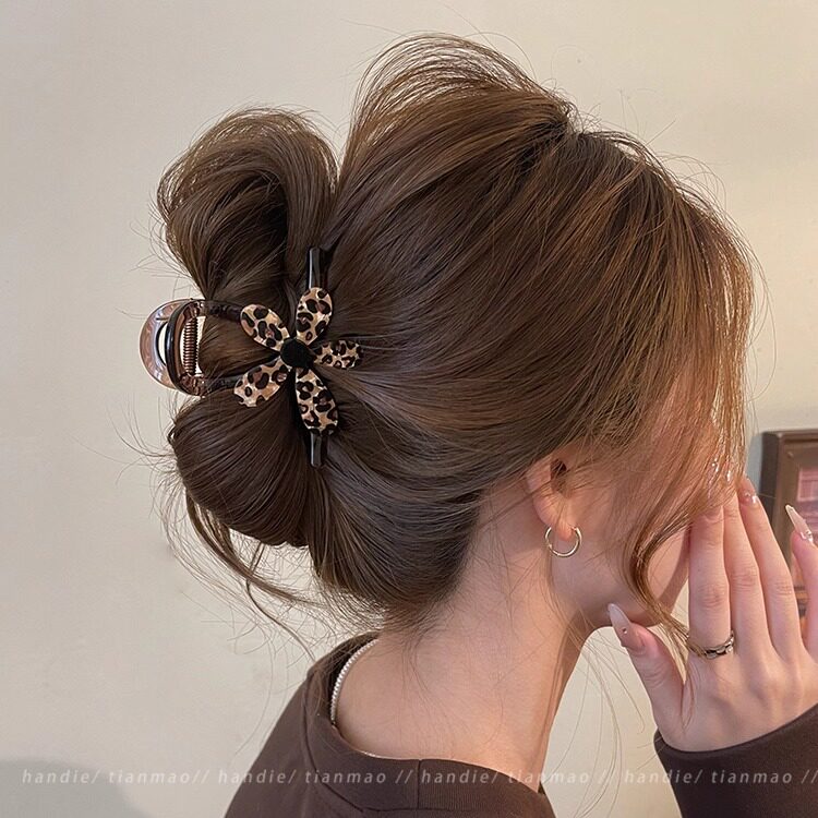 气质豹纹花朵发夹抓夹女2025新高级感后脑勺盘发大号发量大鲨鱼夹