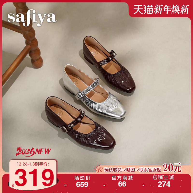 索菲娅2026春季新品法式真皮透气一字扣铆钉褶皱气质尖头玛丽珍