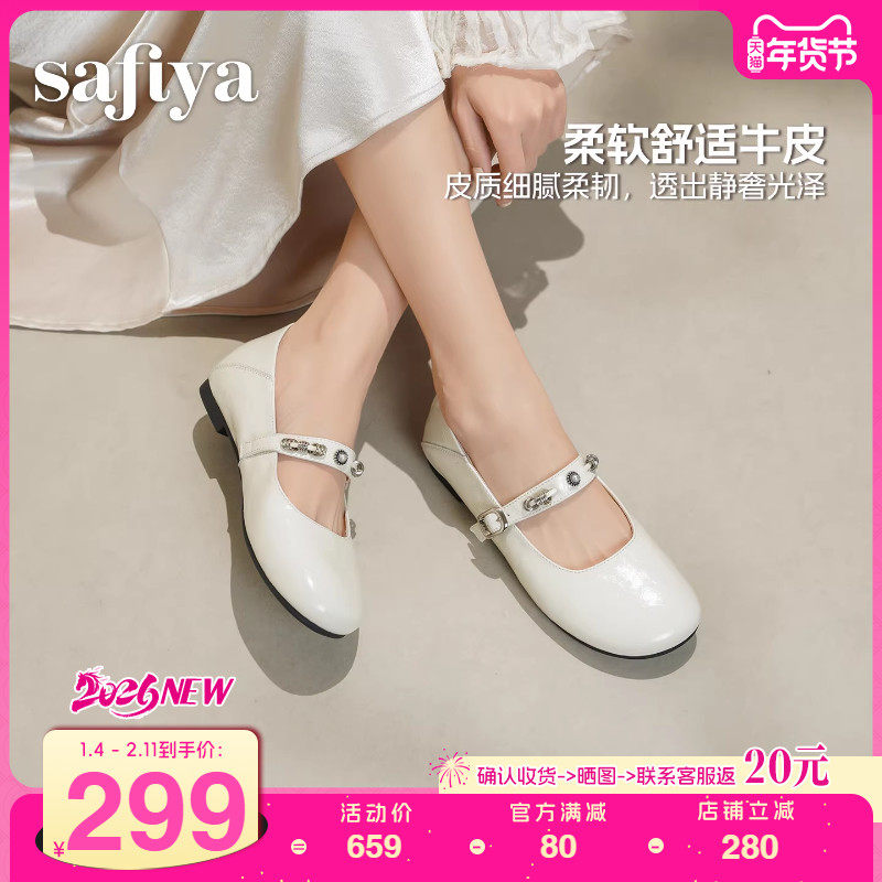索菲娅2026春季新品法式铆钉平底百搭真皮浅口复古玛丽珍鞋单鞋女