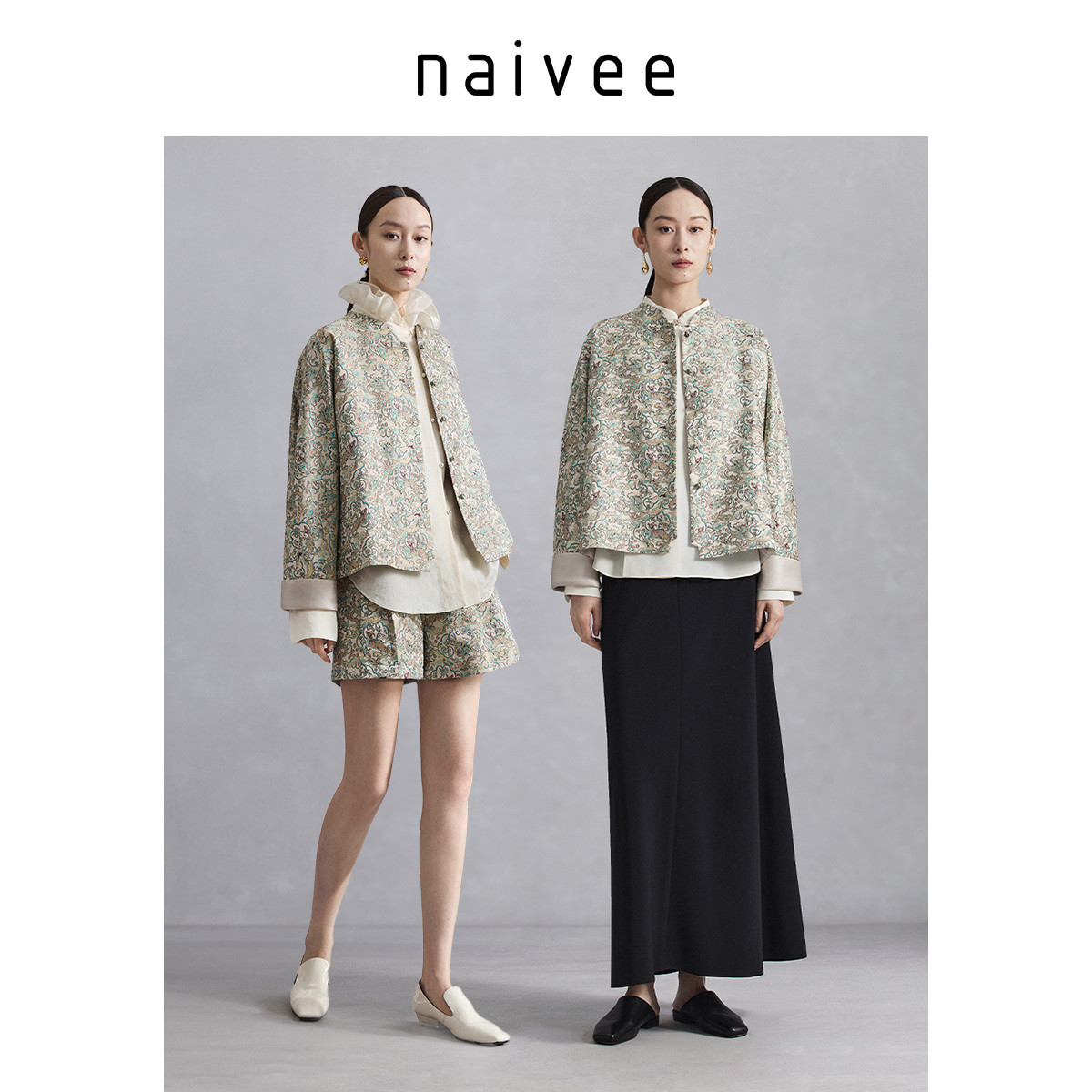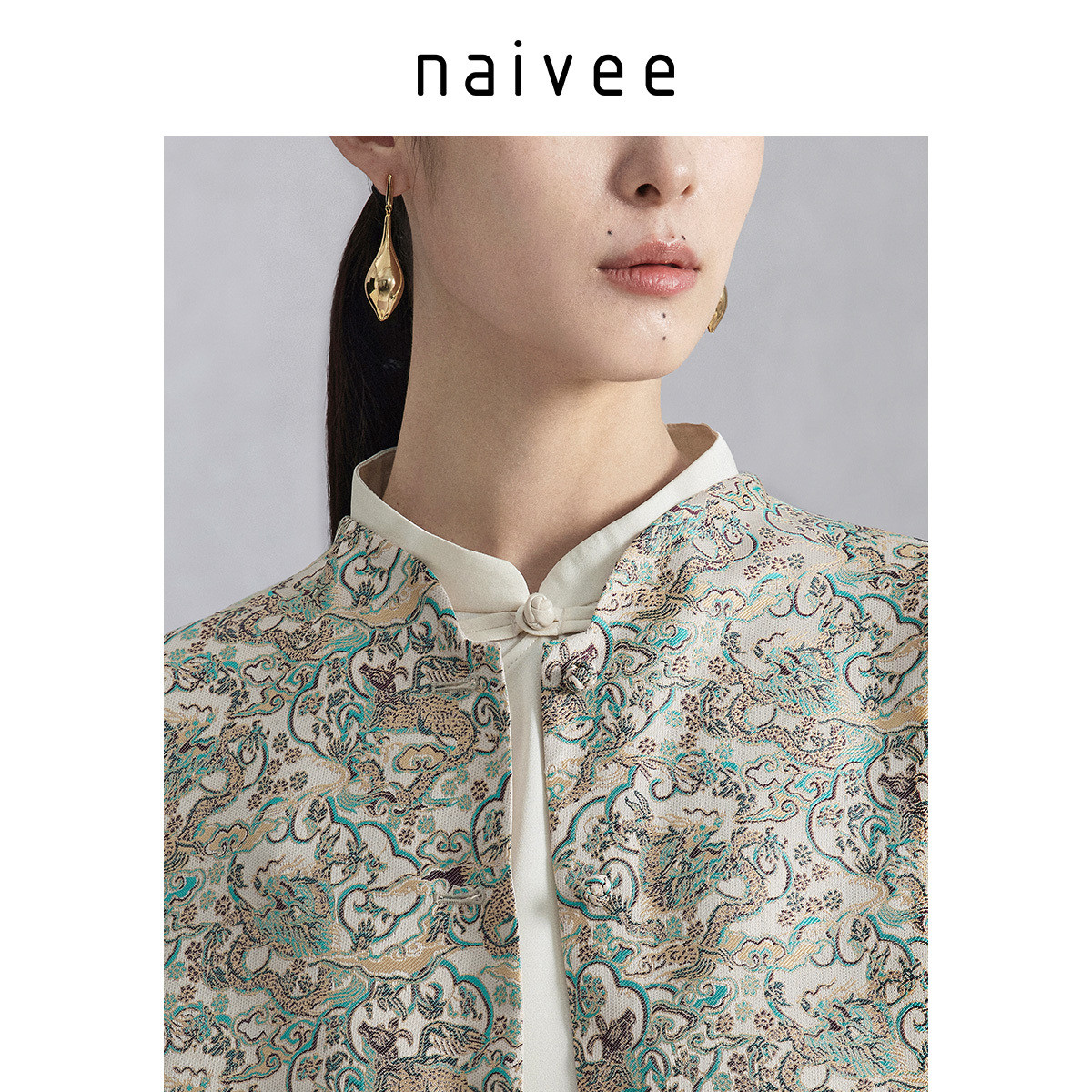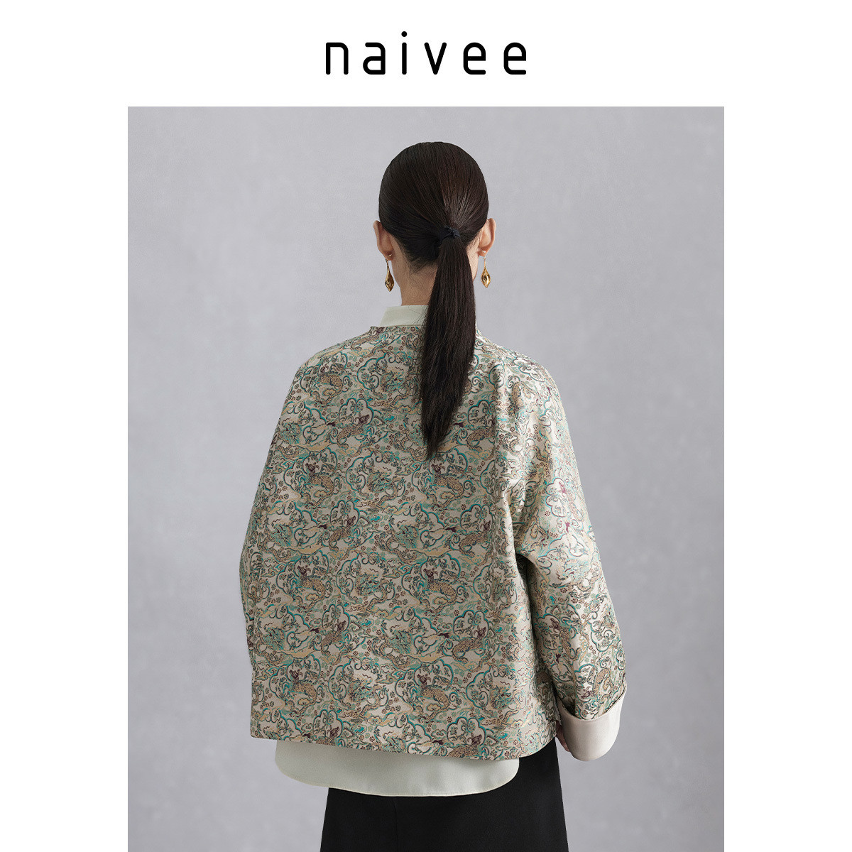 【牛首龙纹】naivee纳薇秋冬季新中式仿宋锦高智宽松光泽上衣外套
