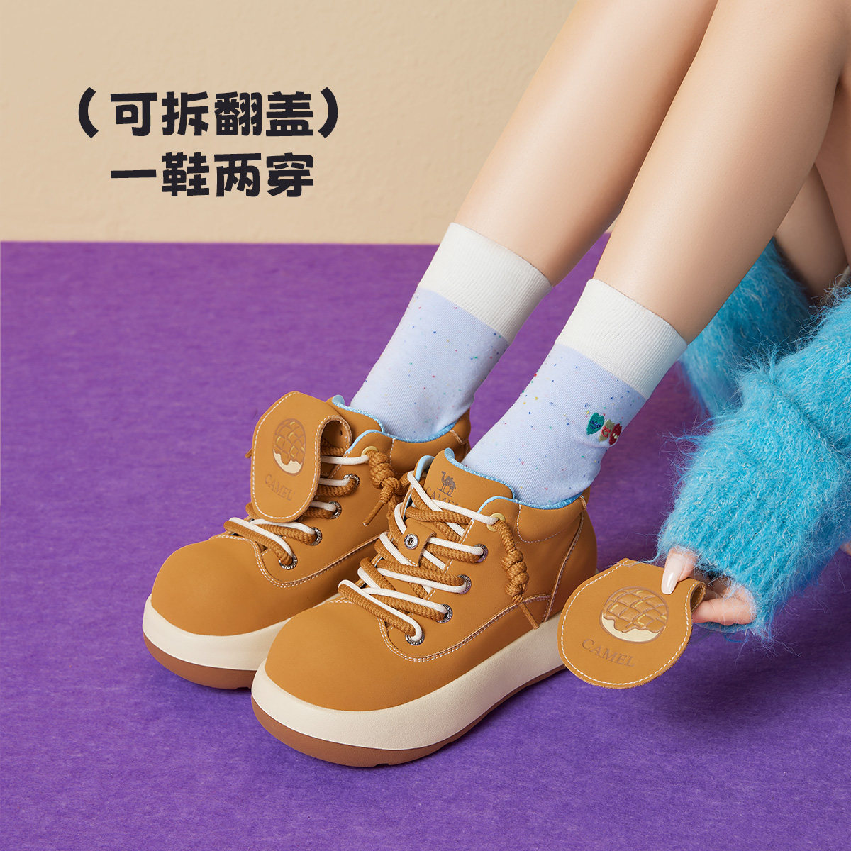 骆驼马丁靴女2025秋厚底轻便圆头工装靴短靴软底菠萝包大黄靴