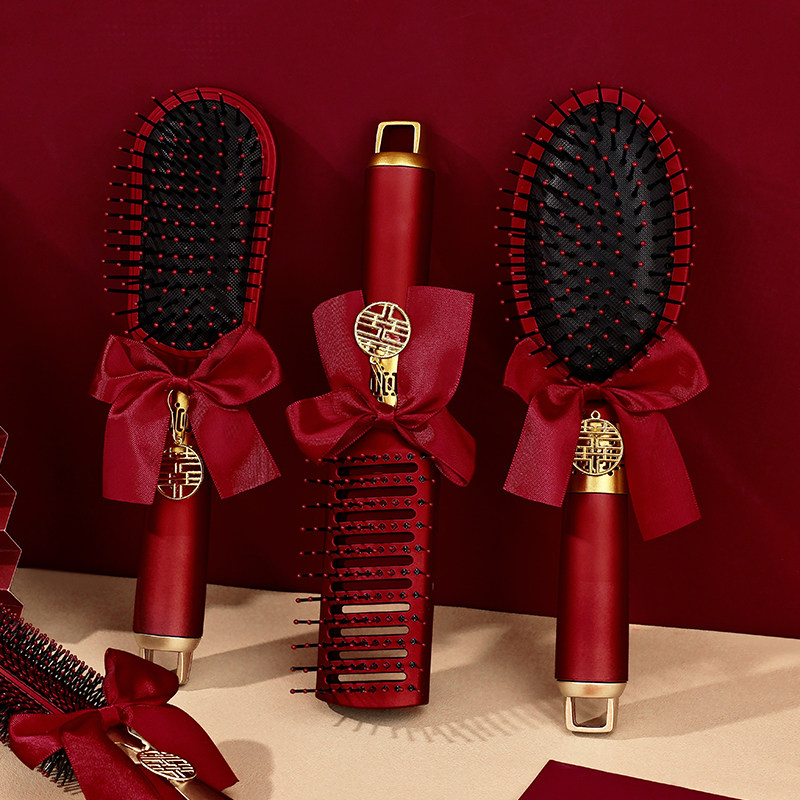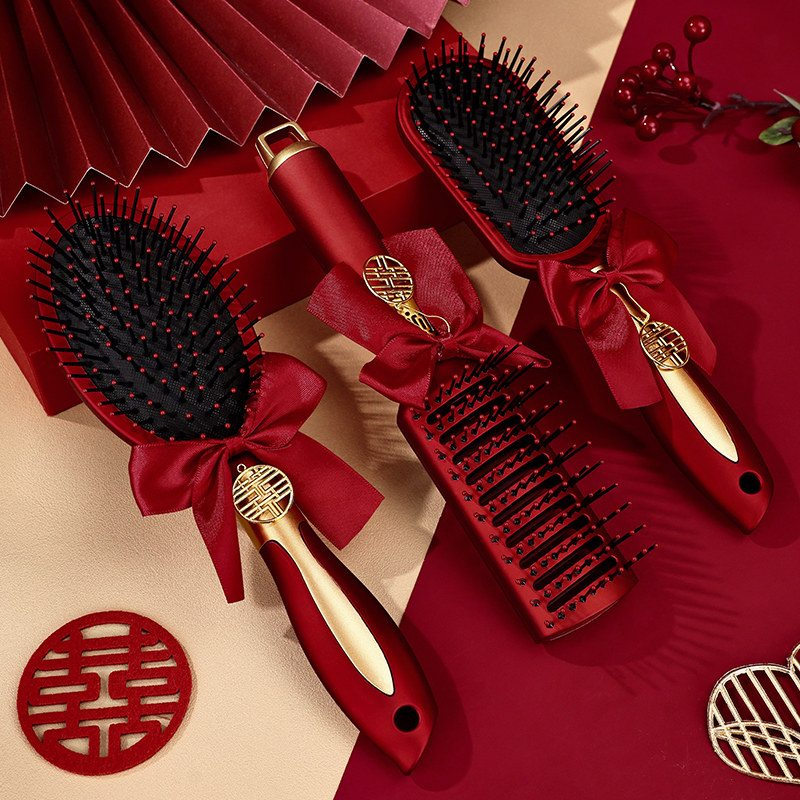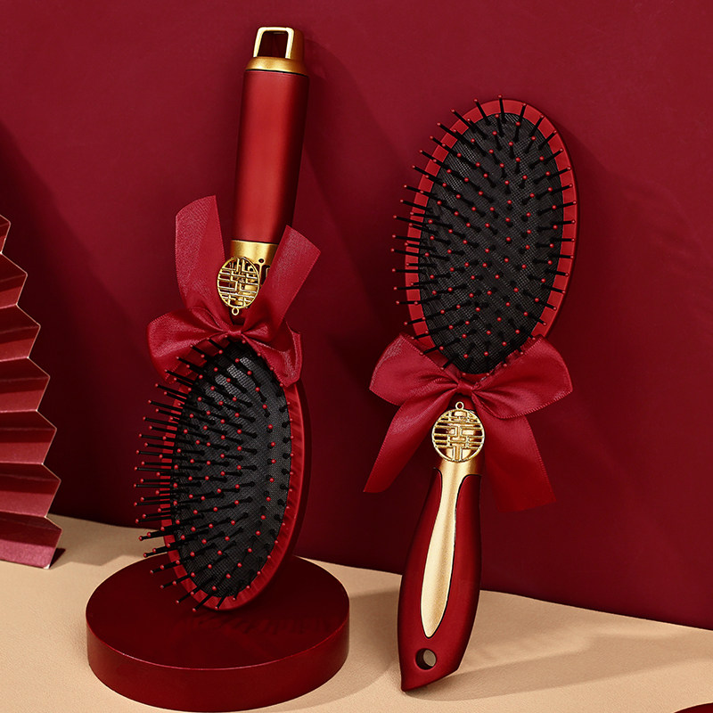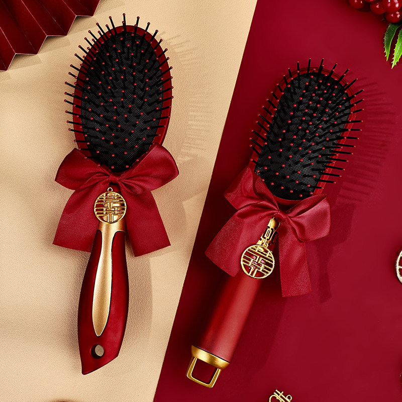 结婚梳子一对新娘女方陪嫁红色气囊木梳喜梳专用高档婚庆用品大全