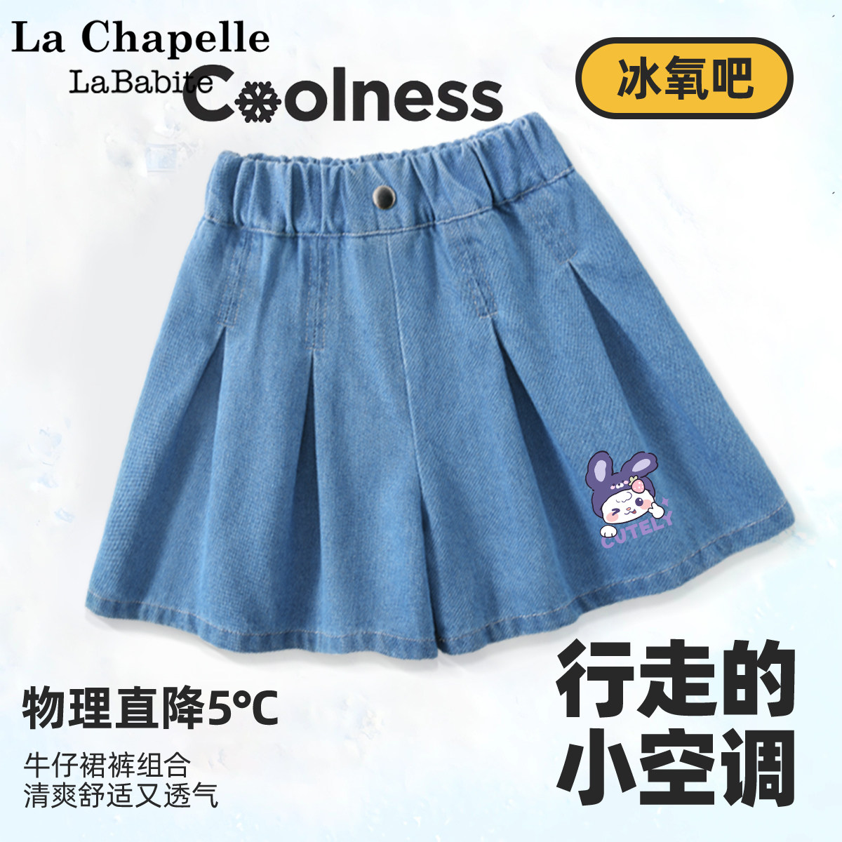 拉夏贝尔女童夏季牛仔短裤2025新款五分裤女孩运动裤儿童夏装裤子