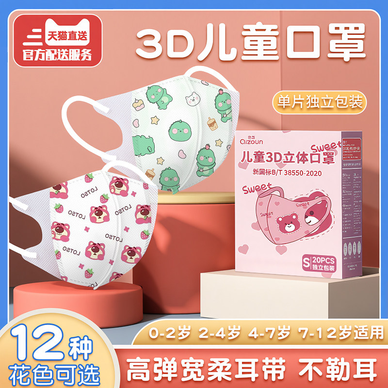 儿童KN95口罩4D立体学生卡通可爱小学生3到12岁四层防护独立包装