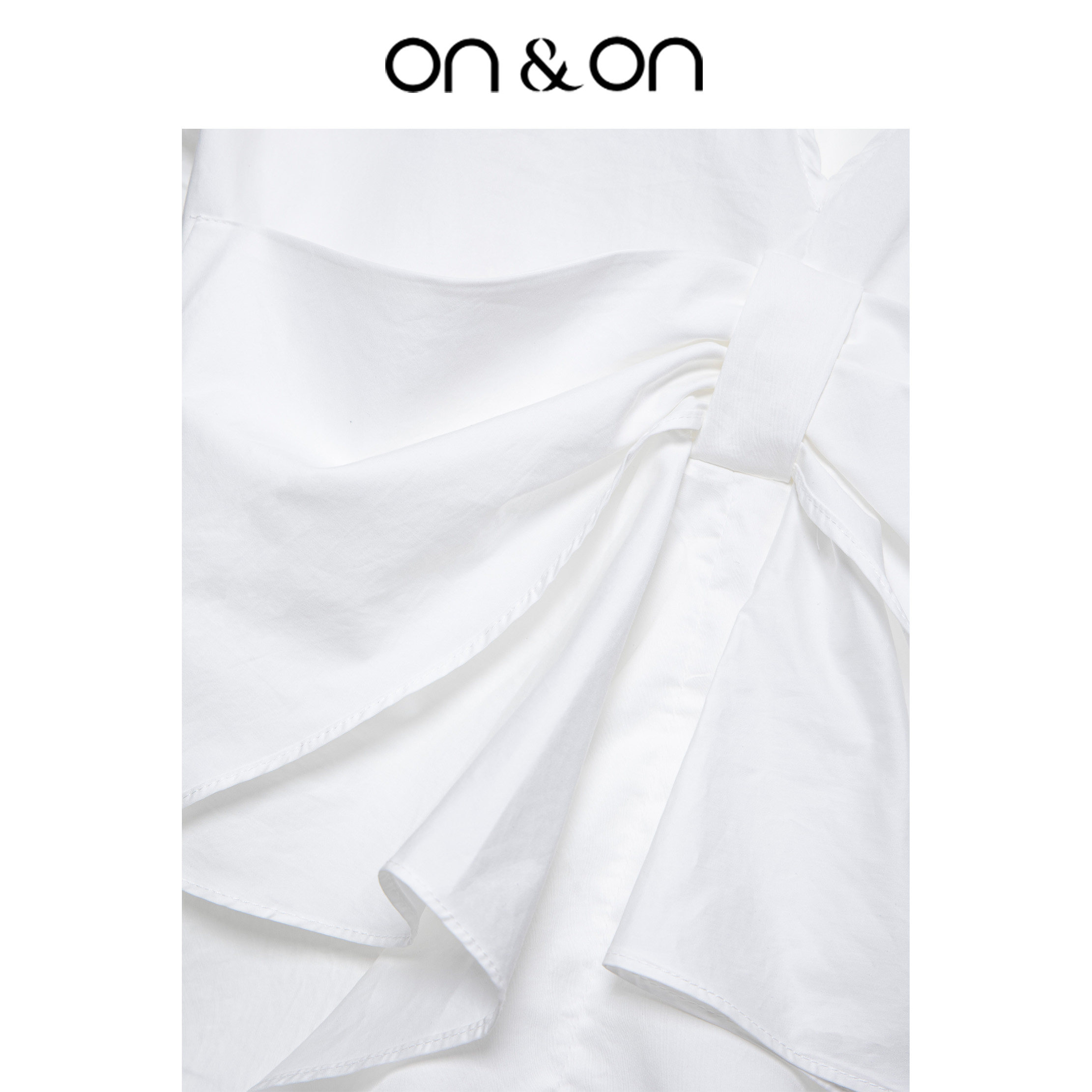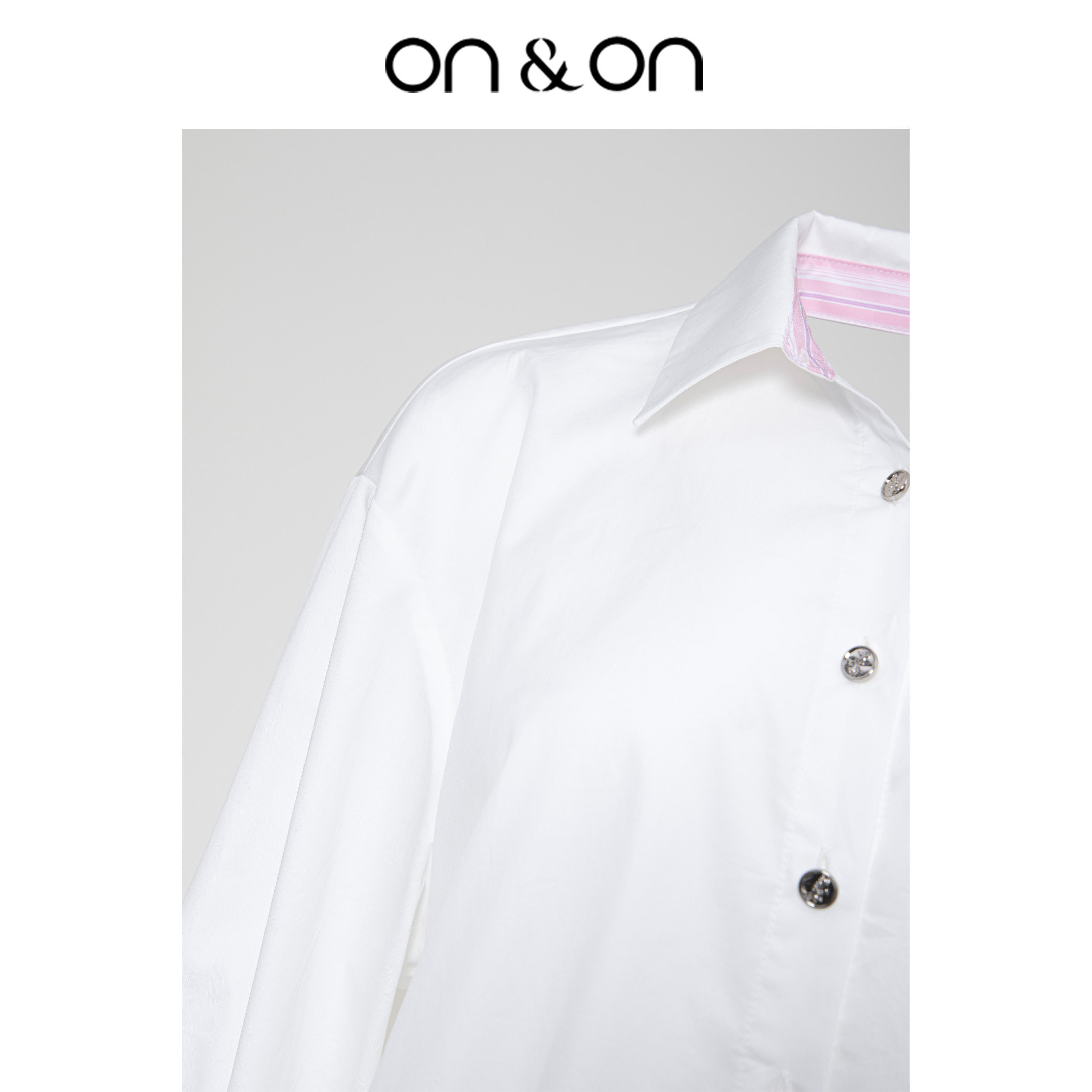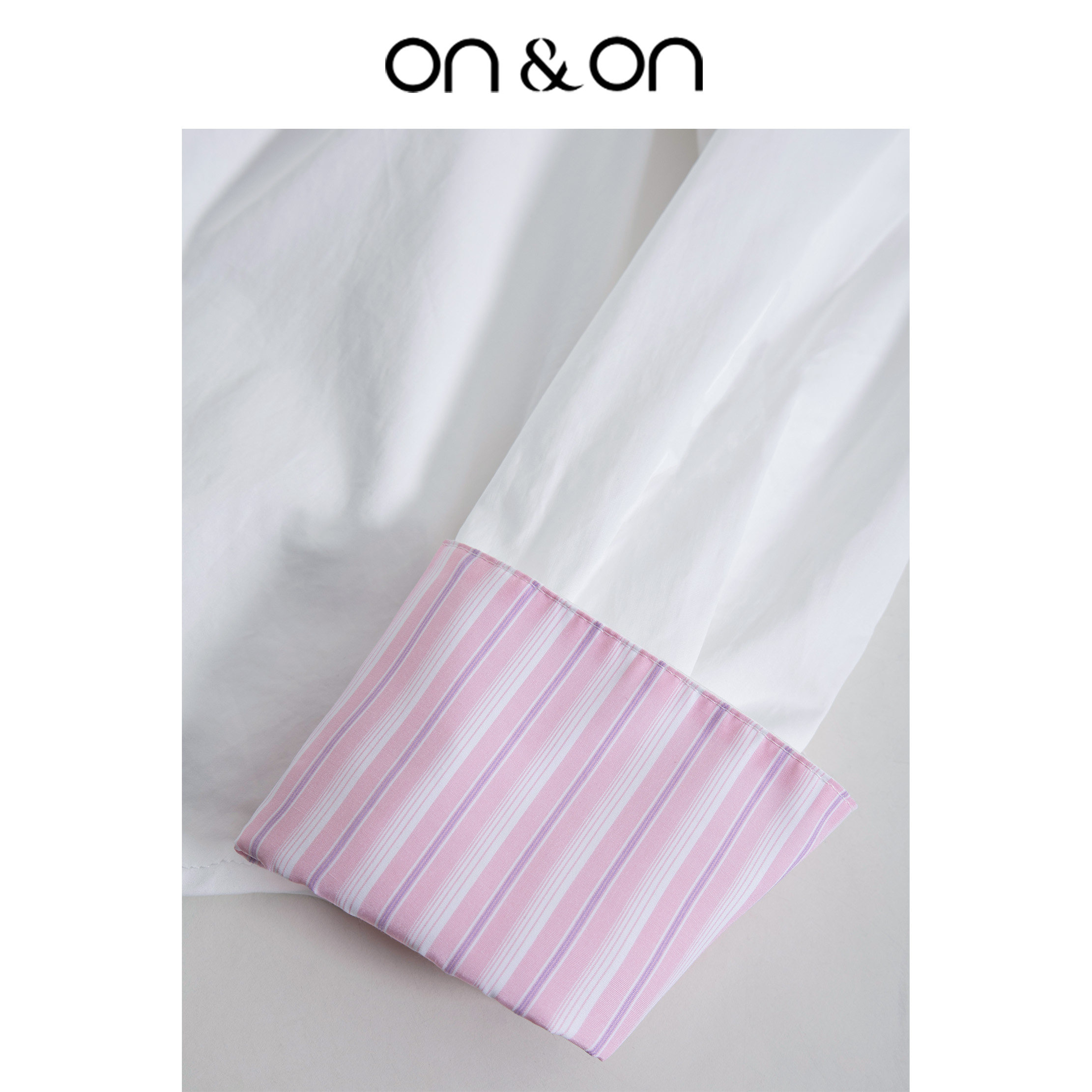 ON&ON/安乃安小众设计露背蝴蝶结拼粉色条纹袖领口拼接长袖衬衫
