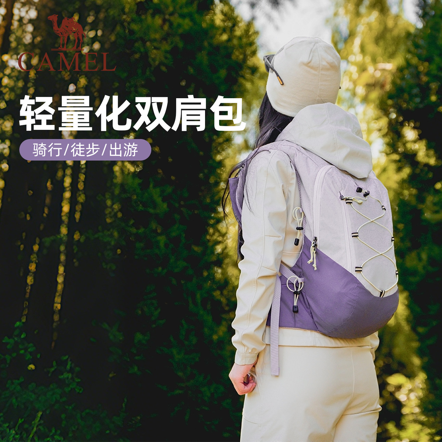 【沙丘包】骆驼紫色马甲双肩包轻量化旅游背包户外徒步骑行登山包