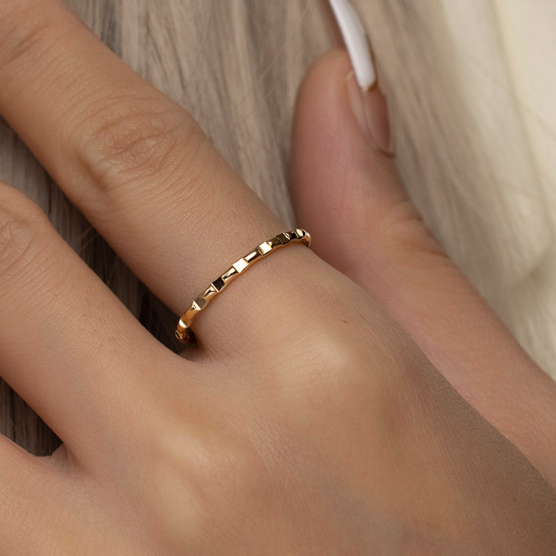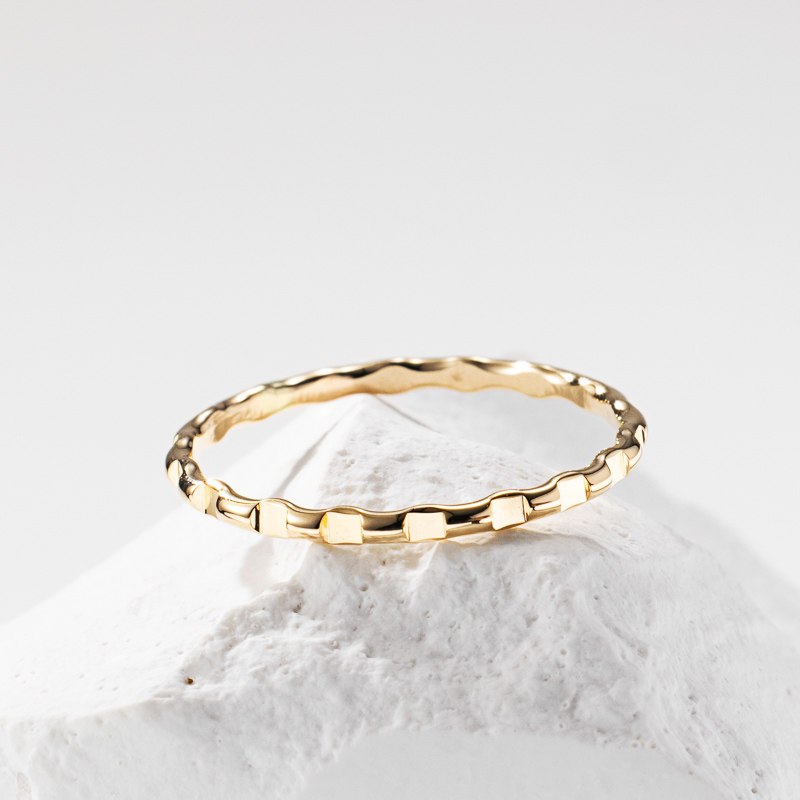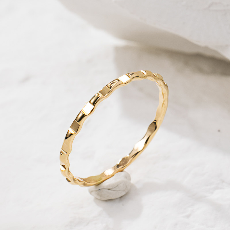 14K包金錾刻闪亮方块叠戴戒指女 欧美ins风高级感尾戒小指关节