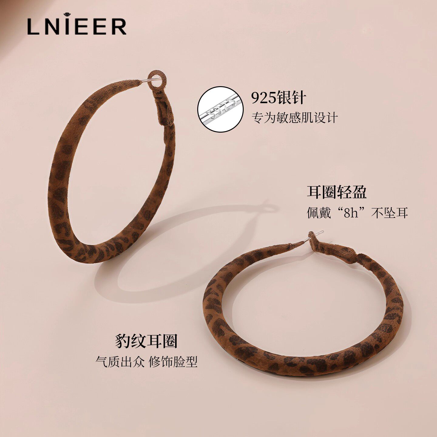 S925纯银针复古豹纹大圆圈耳环女高级感气质耳圈显脸小方圆脸耳饰