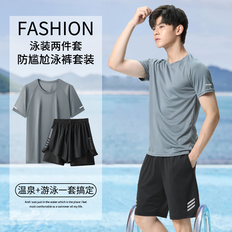 泳衣套装男款游泳防尴尬防晒潜水成人男泡平角双层速干轻薄泡温泉