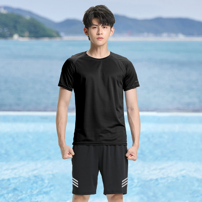 男士泳衣套装新款速干双层泳裤长袖防晒沙滩上衣成人全套游泳装备