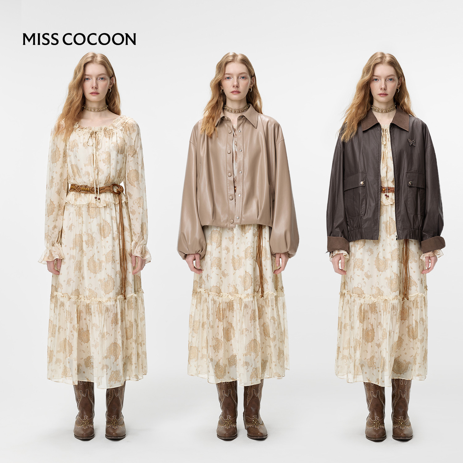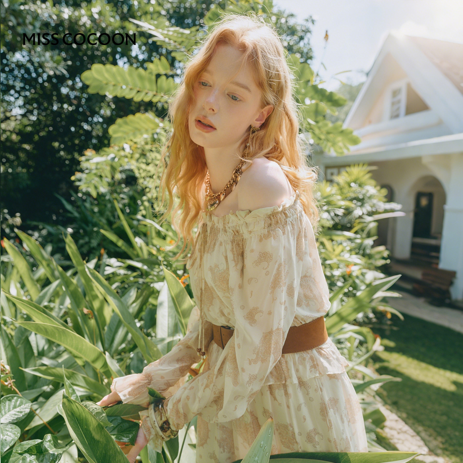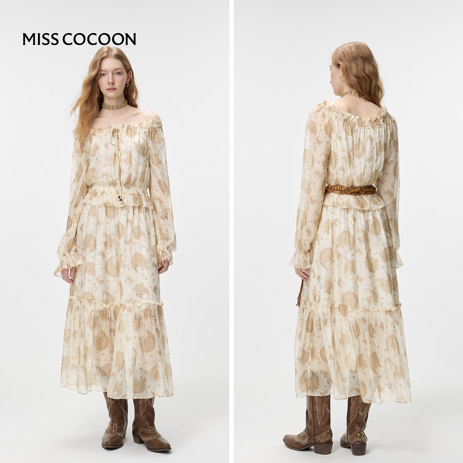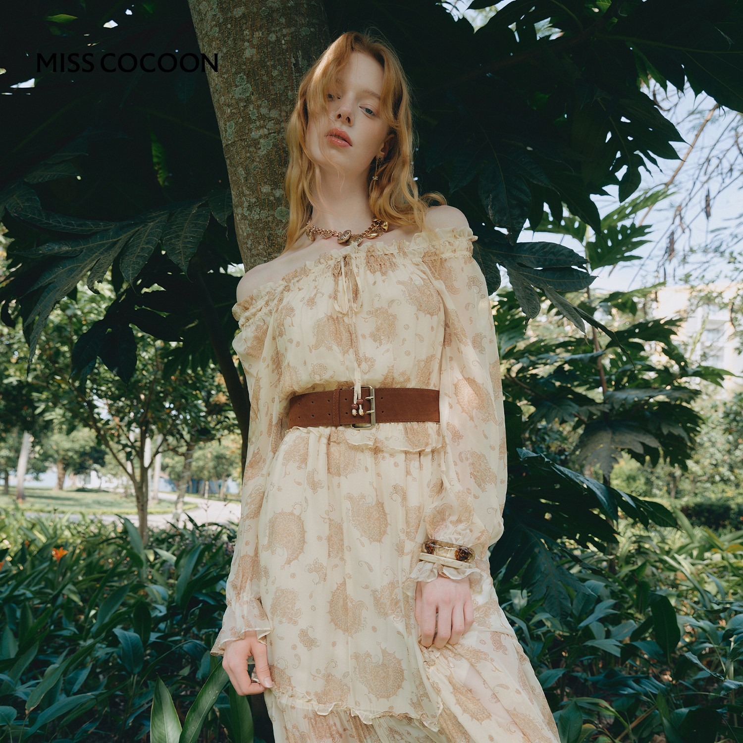 MISSCOCOON可可尼桑蚕丝印花长裙女2026春季新款波西米亚风连衣裙
