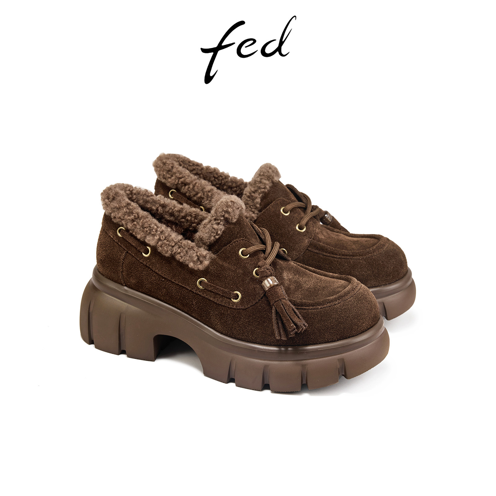 fed加绒乐福鞋冬季新款女鞋复古毛毛鞋一脚蹬单鞋女款S1022-ZC506