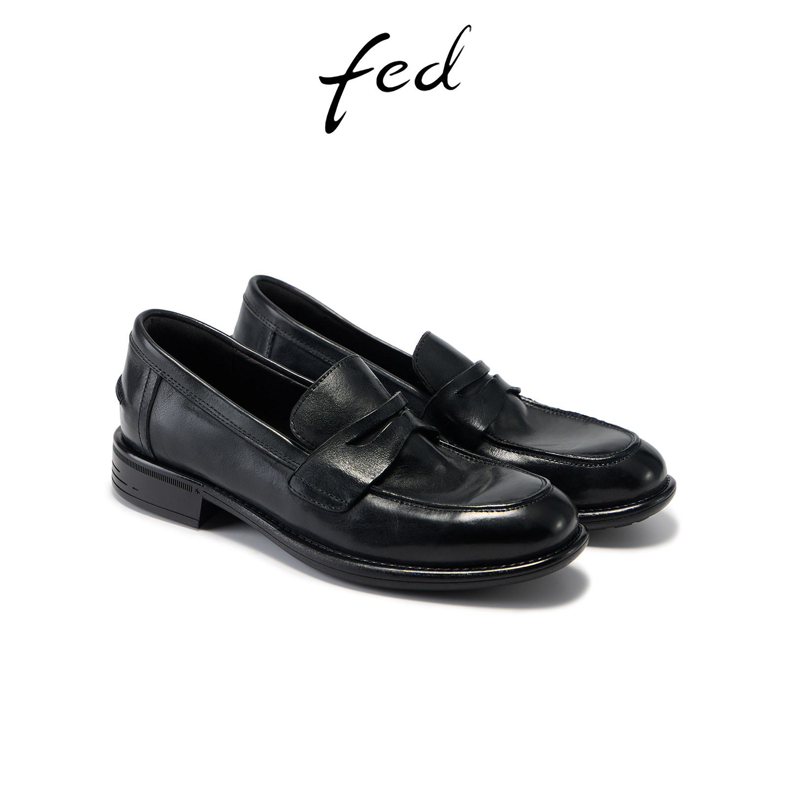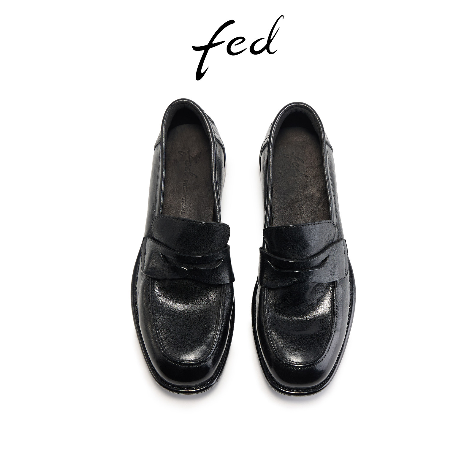 fed粗跟乐福鞋春季新款女鞋黑色小皮鞋通勤真皮单鞋女S1118-YA066