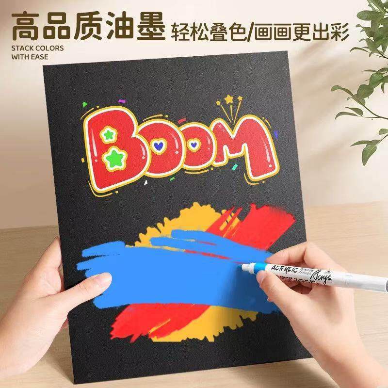丙烯马克笔学生专用美术业不透纸可叠色儿童幼儿园小学无毒可水洗