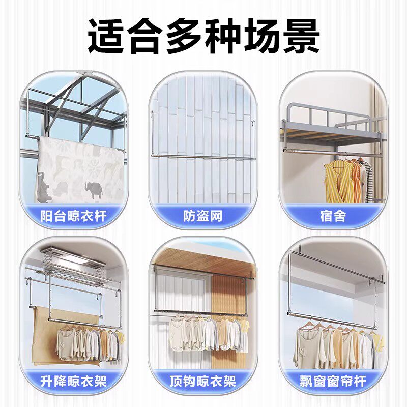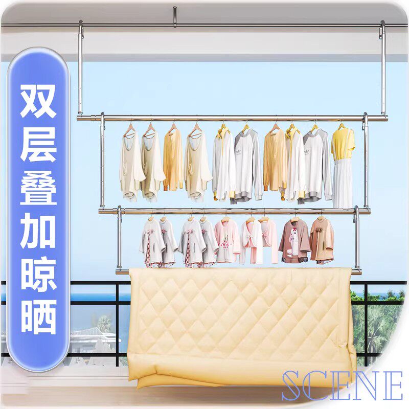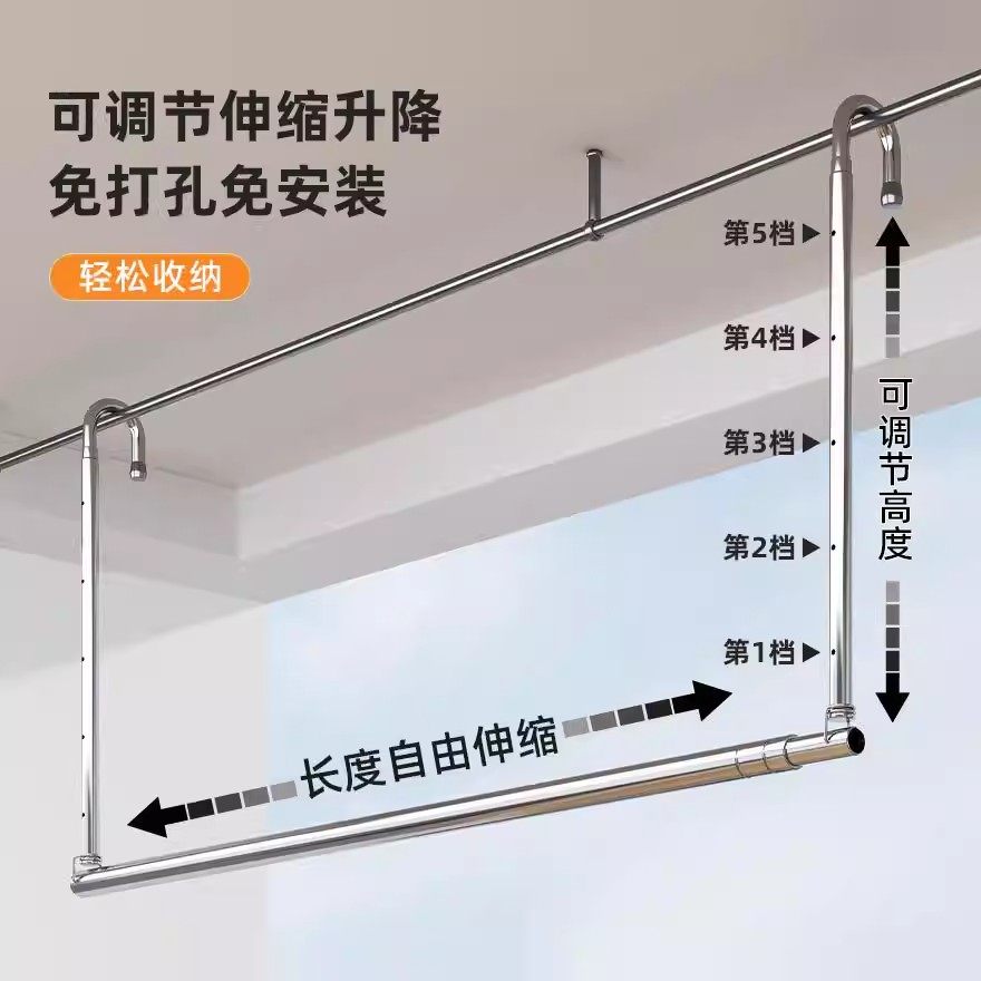 晾衣杆升降伸缩晾衣架免打孔凉衣杆不锈钢晒被子专用神器折叠晾晒