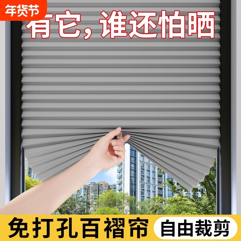 自粘百褶帘遮阳窗帘免打孔遮光帘卧室家用百叶帘简易防晒隐私窗帘