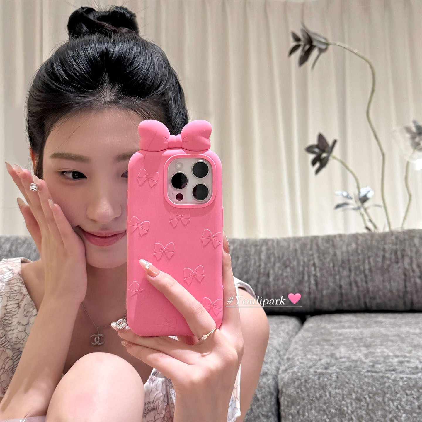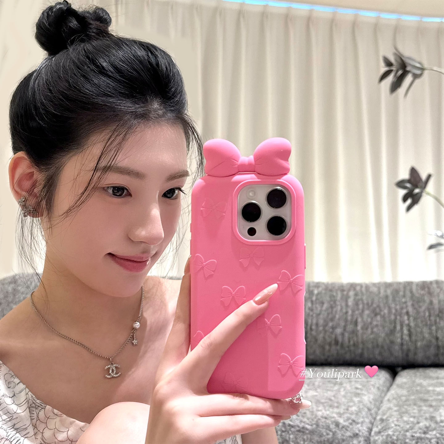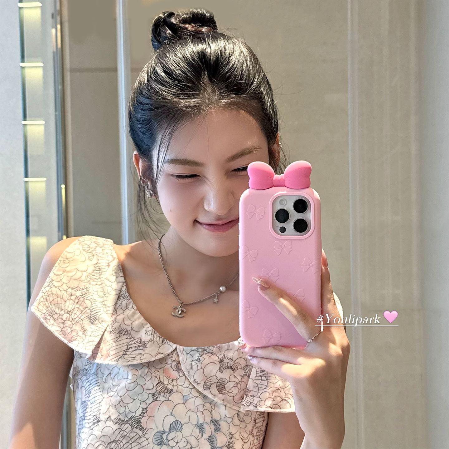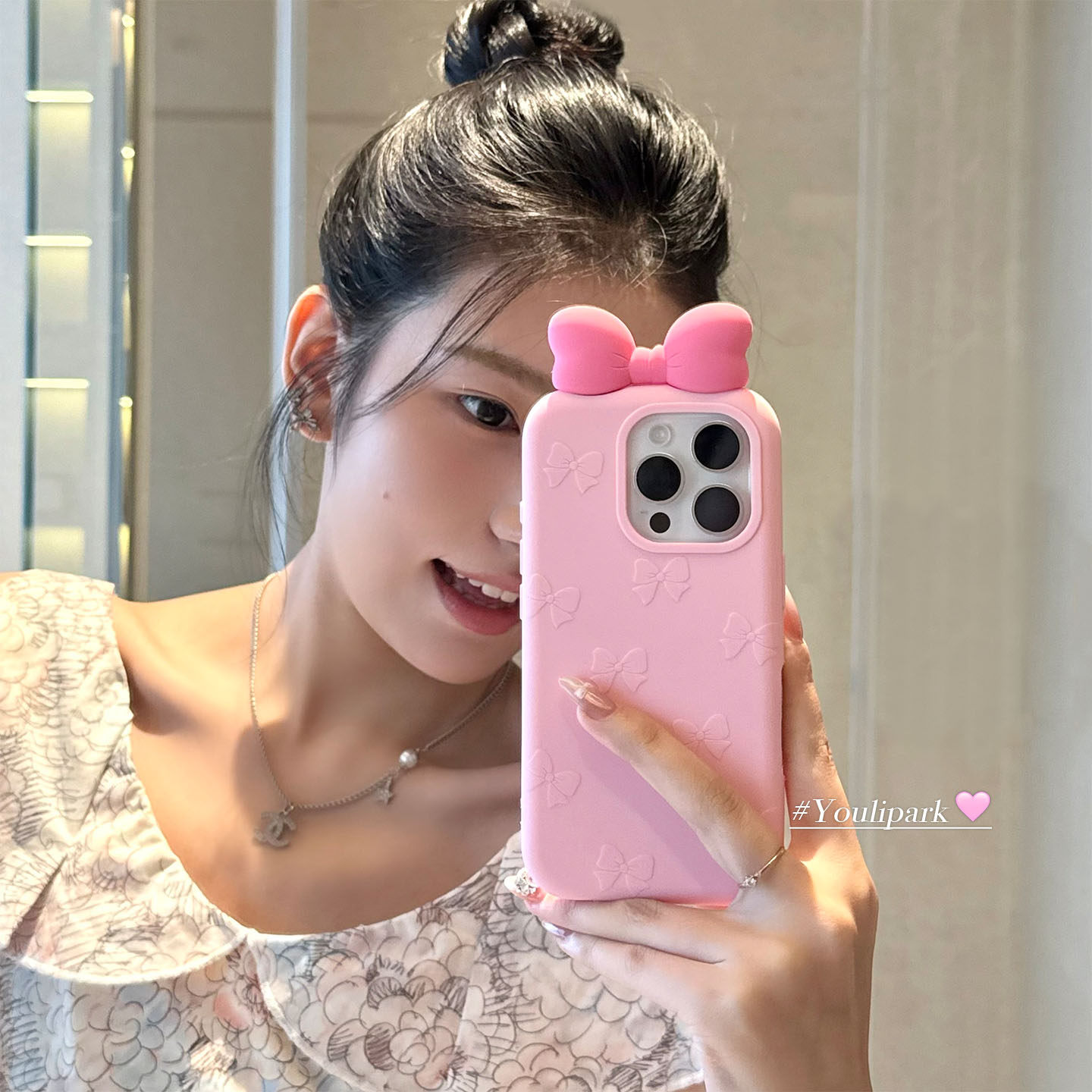 由里公园ins韩系少女心奶油粉立体蝴蝶结15适用16pro苹果16ProMax手机壳iPhone16全包14硅胶14Promax保护套13