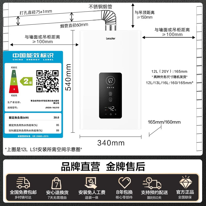 海尔出品统帅官方燃气热水器天然气液化气煤气家用12L洗澡恒温LS1