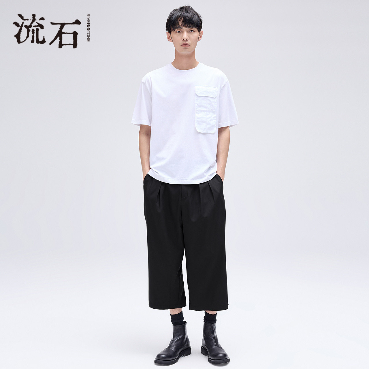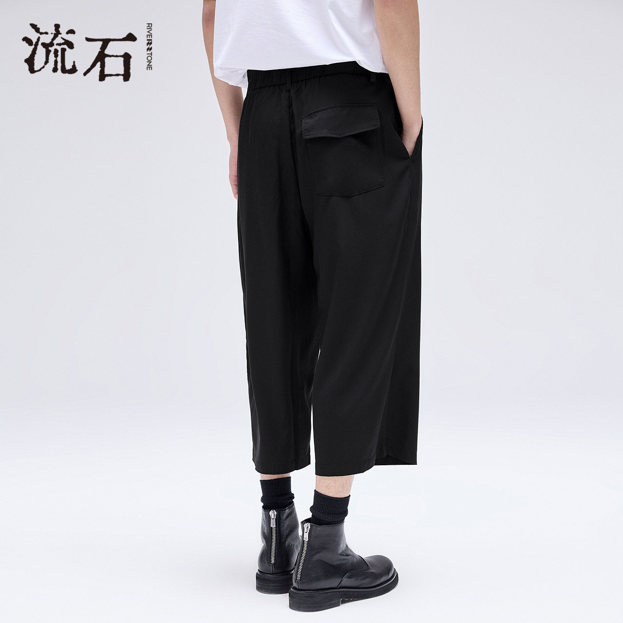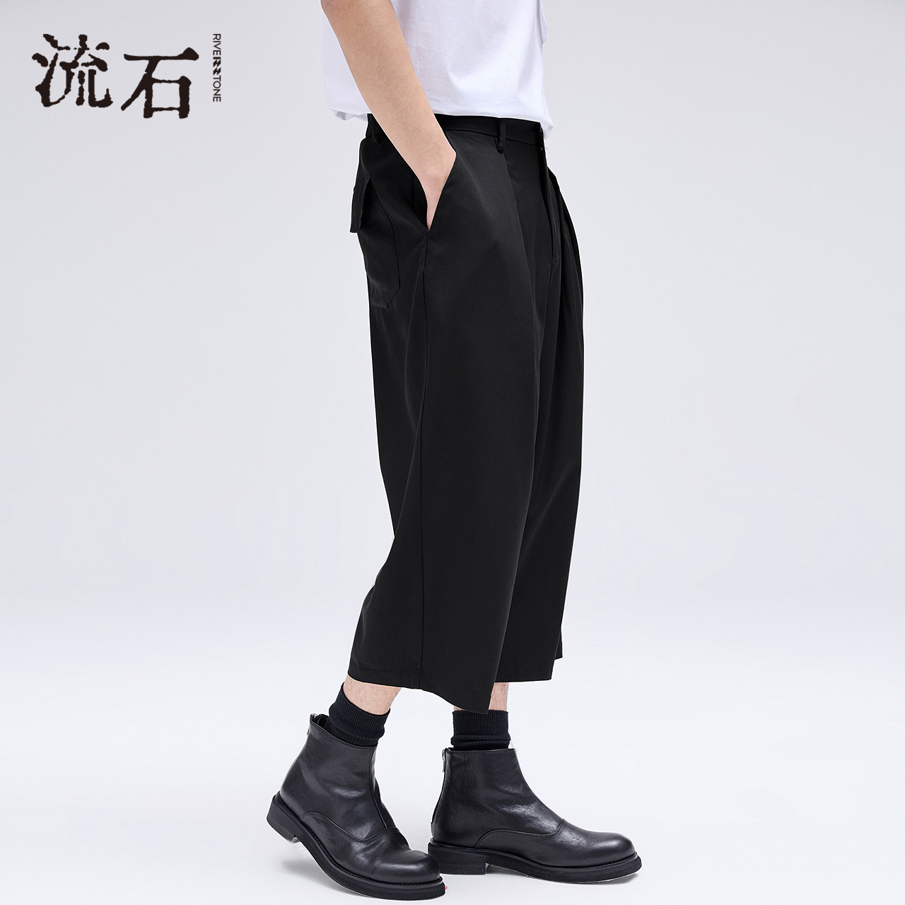 RS流石男装黑色宽松阔版八分裤2026新款夏季男士凉感休闲七分裤子