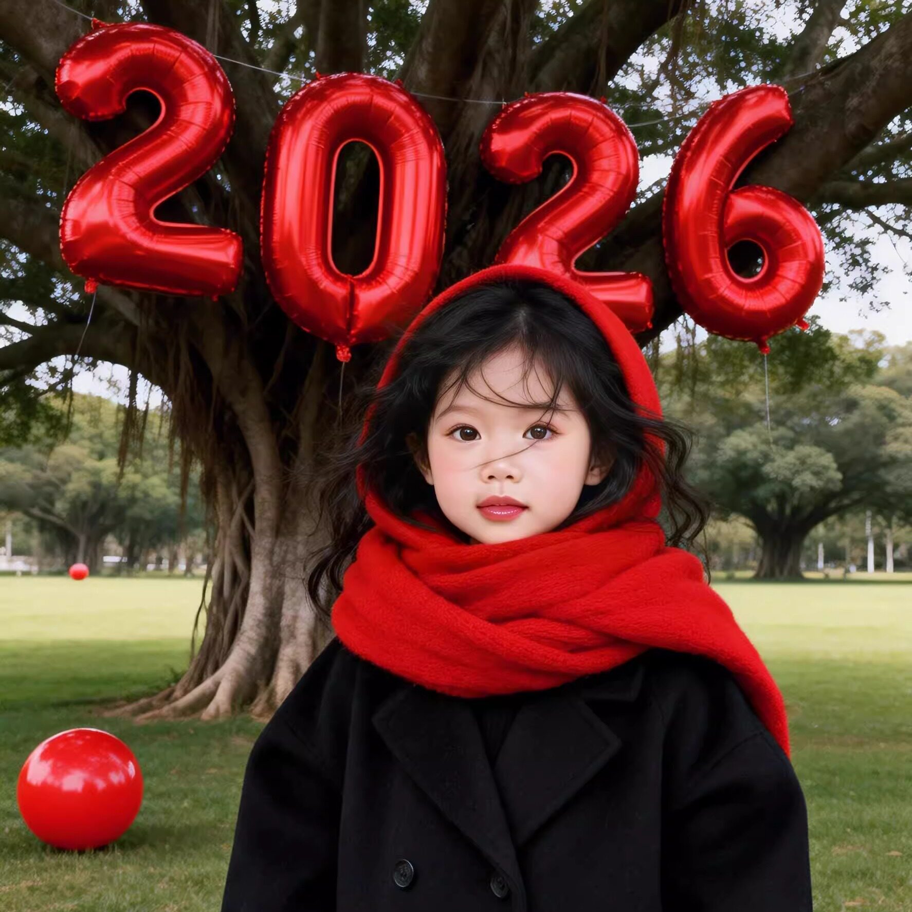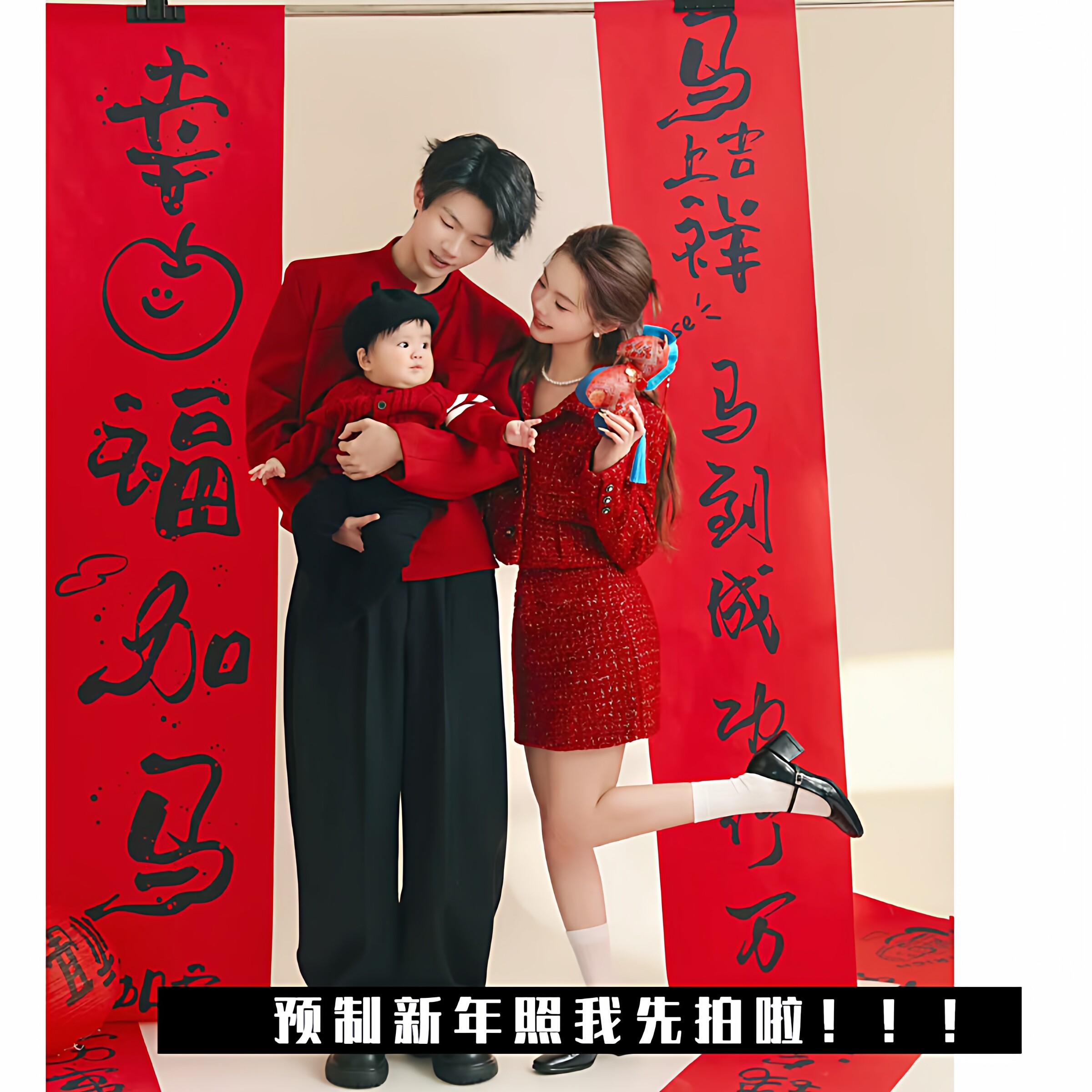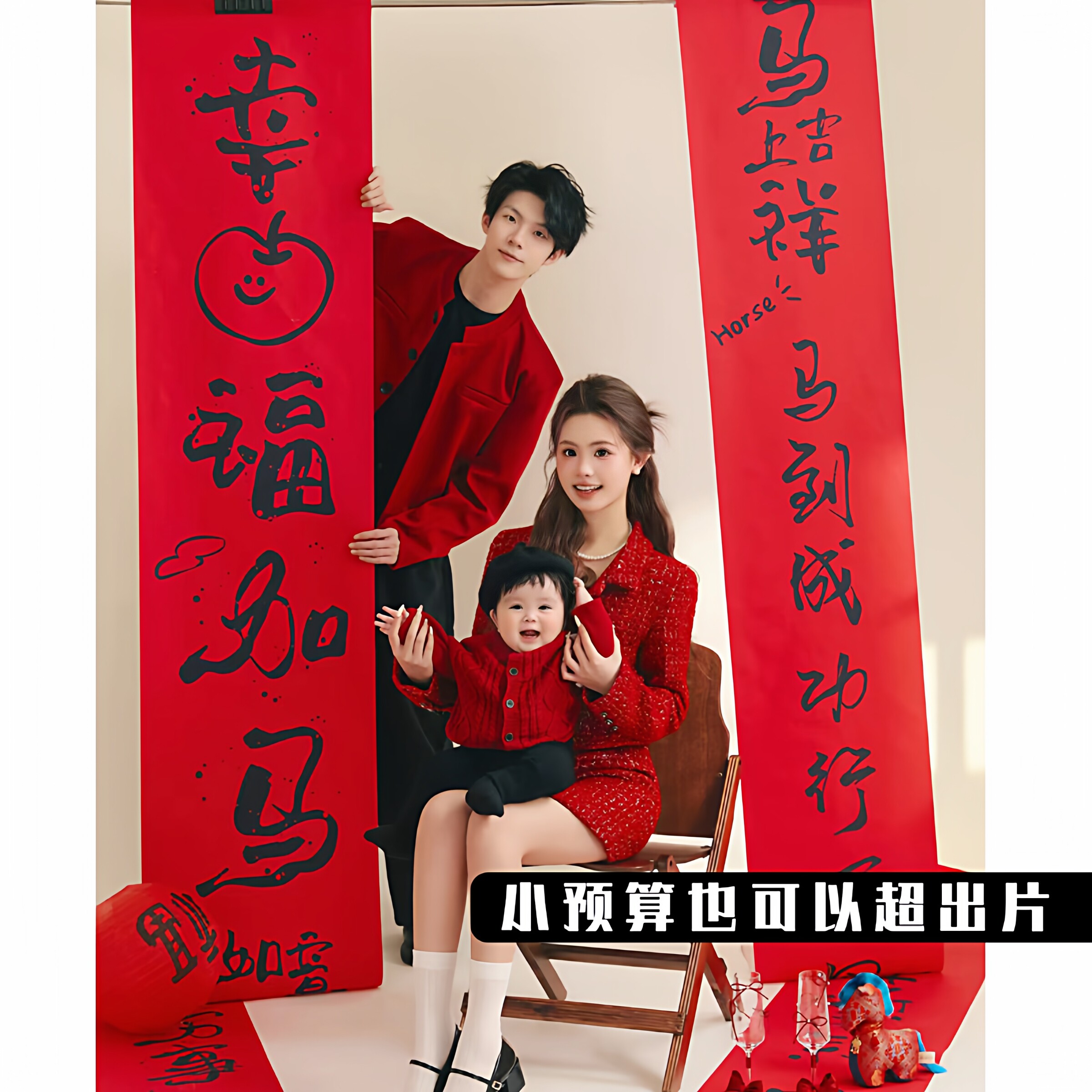 2026新春写真艺术照马年对联条幅布背景装饰福字灯笼儿童拍照道具