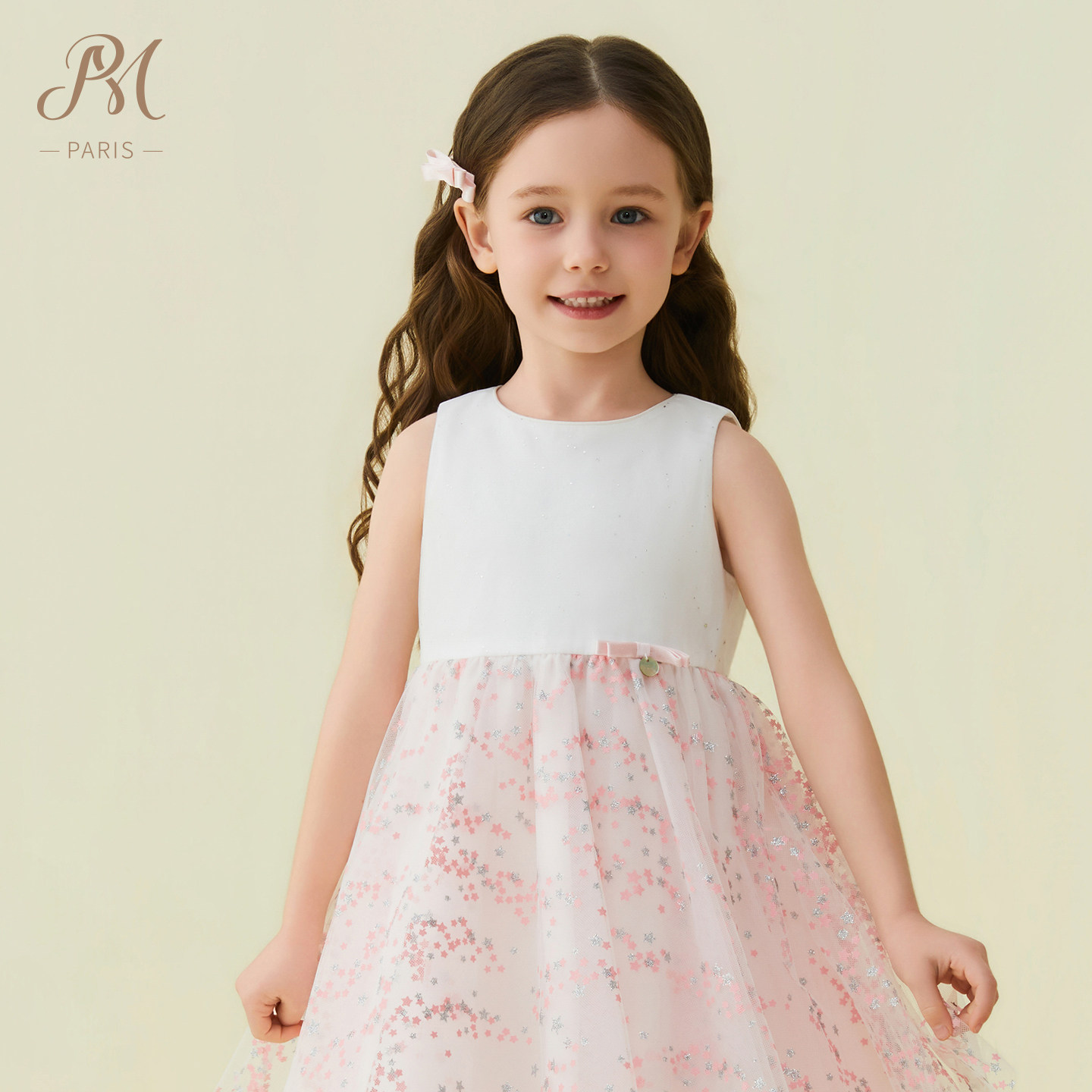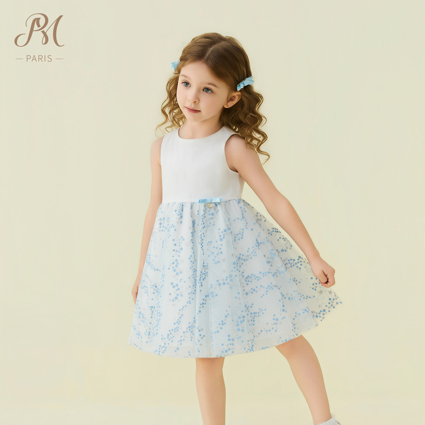 Petite Marguerite小雏菊童装·蓝色粉色星星网纱蝴蝶结连衣裙