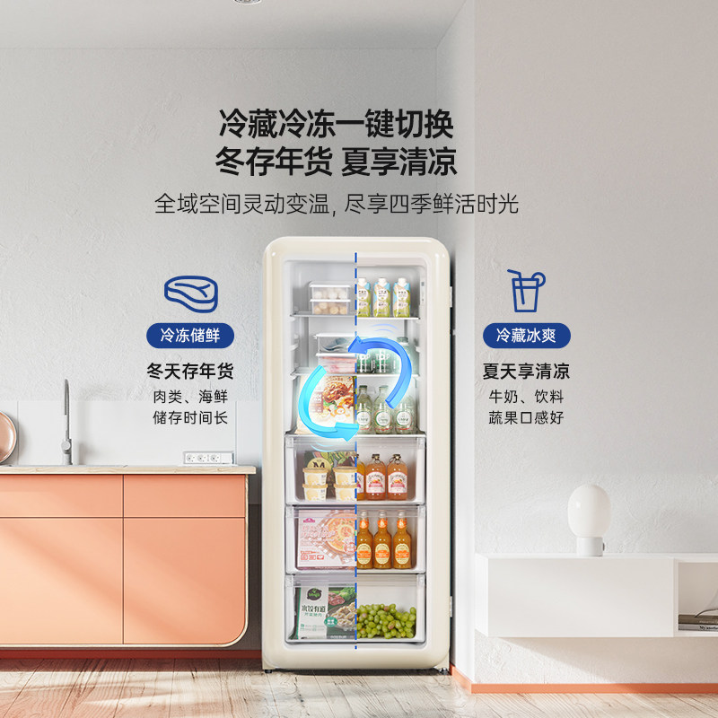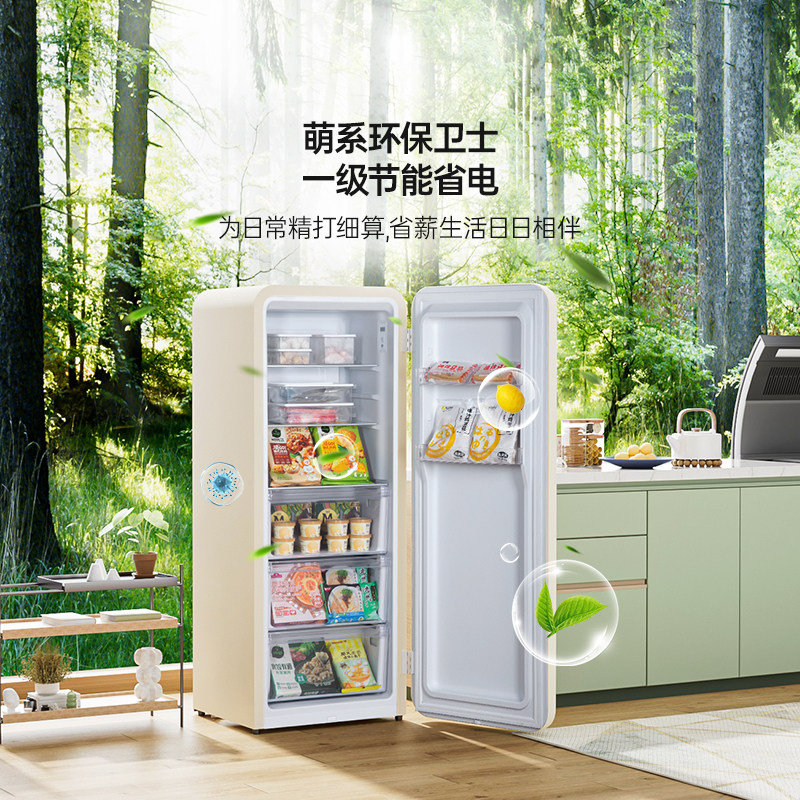 HCK哈士奇冻吐司复古冰箱全保鲜冷冻柜立式冰柜家用客厅风冷单门