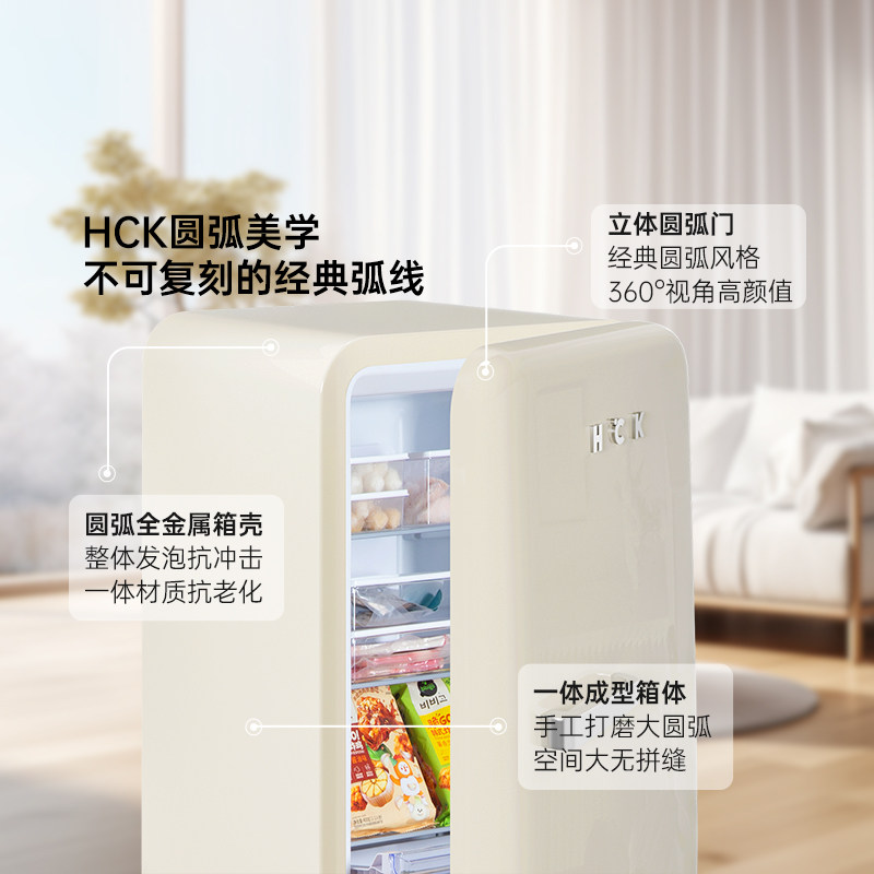HCK哈士奇130GGA复古冰箱冷藏冷冻家用客厅小型大容量网红高颜值