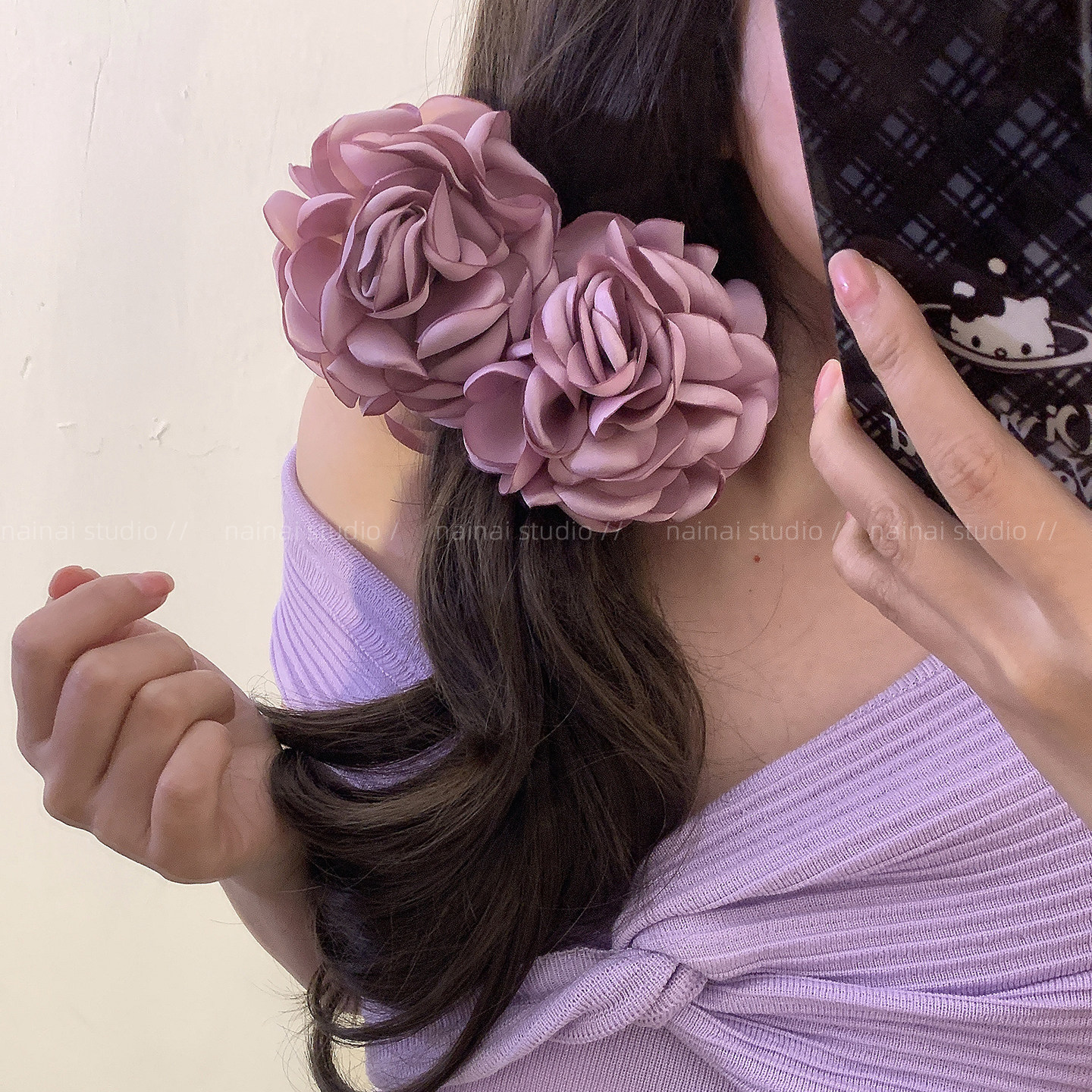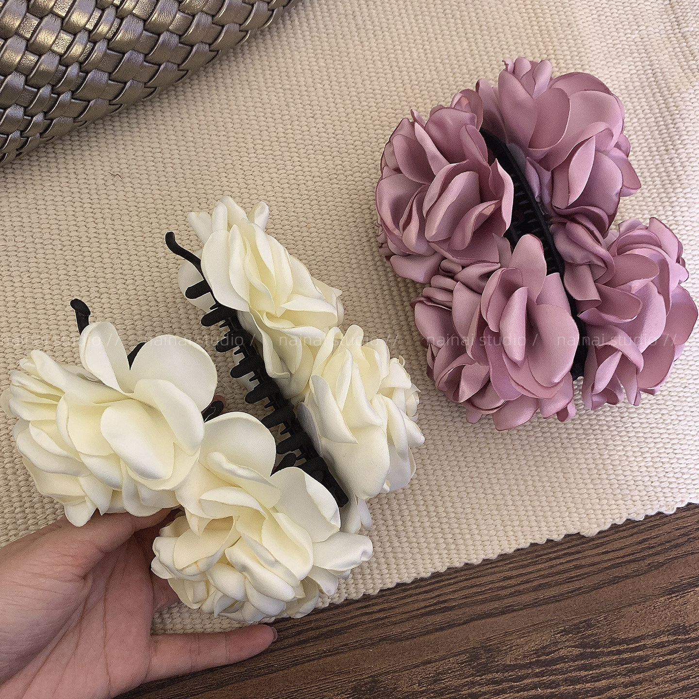 紫色花朵香蕉夹~干枯玫瑰花竖夹2026早春山茶花马尾夹发夹发饰女A
