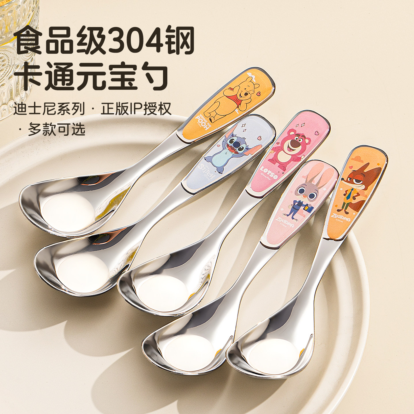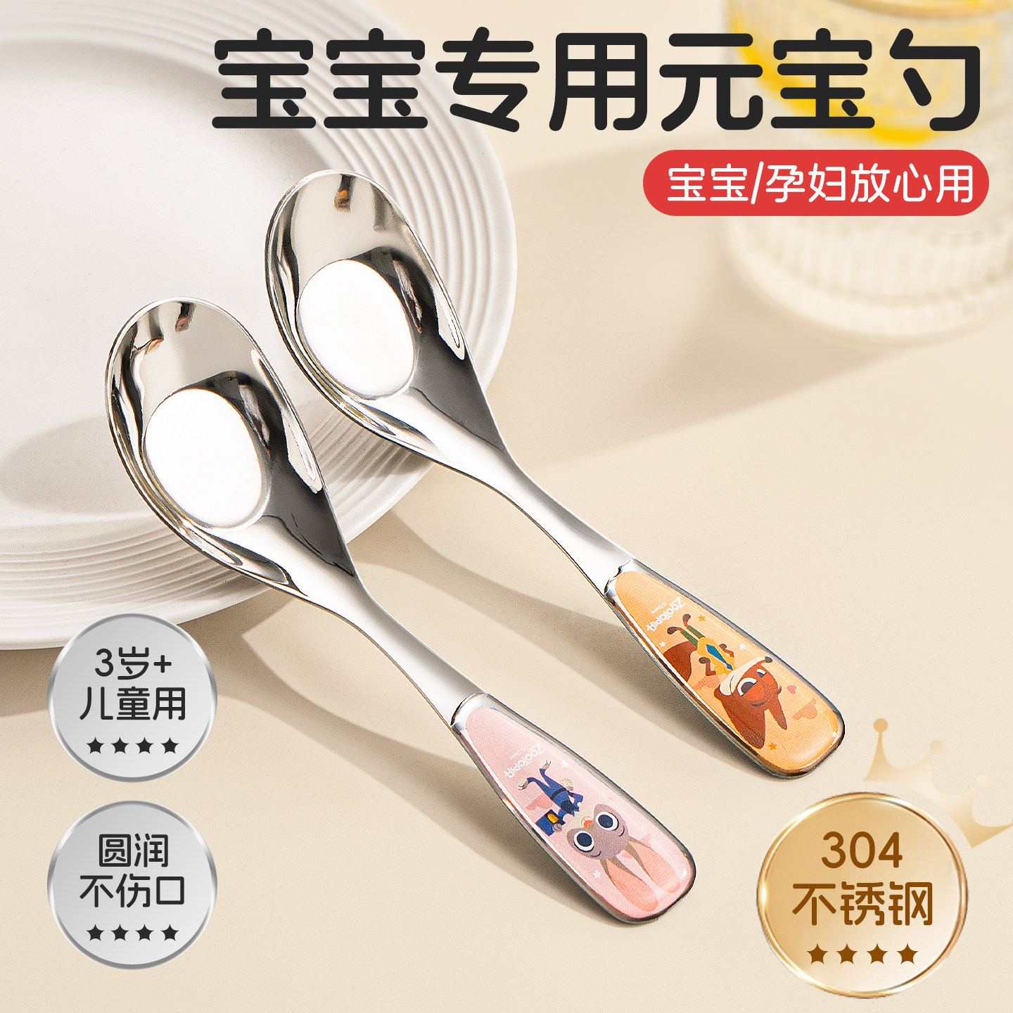 疯狂动物城儿童勺子食品级不锈钢朱迪尼克迪士尼卡通304元宝勺子