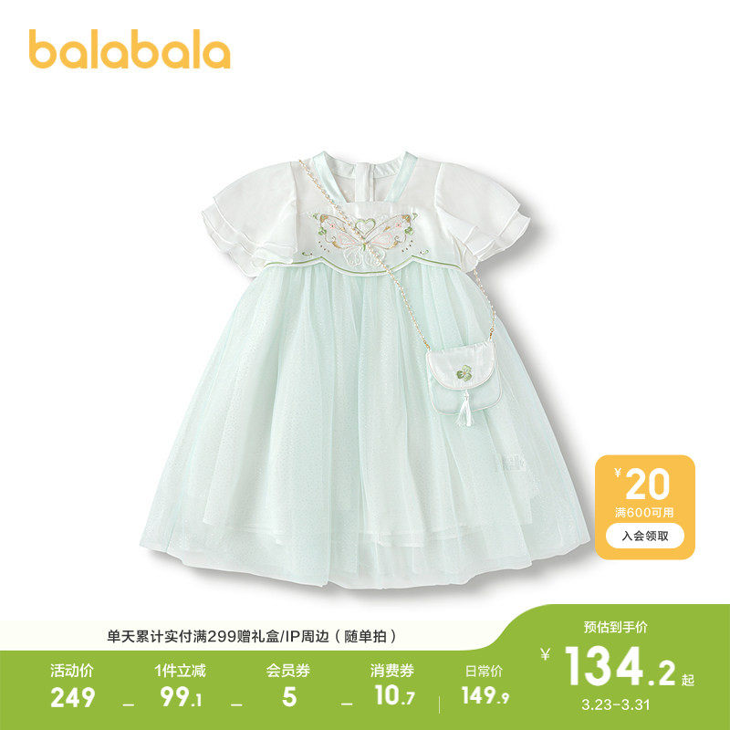 巴拉巴拉童装女童连衣裙儿童裙子夏装精致刺绣国风汉服襦裙新中式