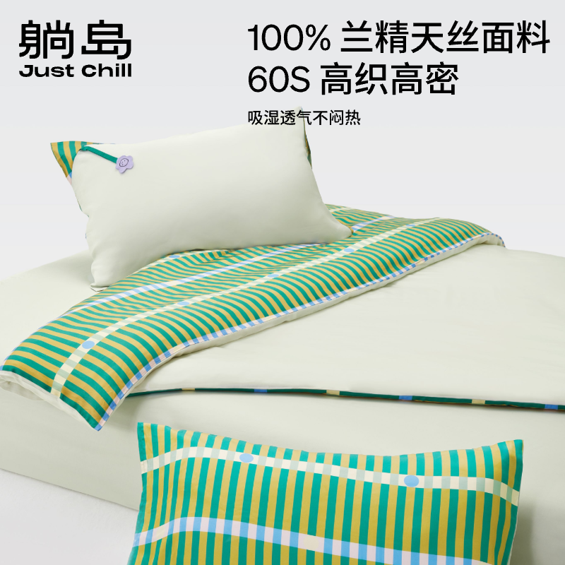 躺岛耷拉天丝四件套高级轻奢凉感被套床单夏季冰丝三件套床上用品