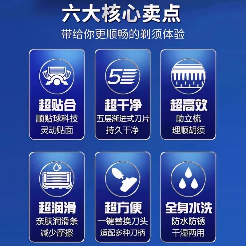进口6层刀片剃须刀利亚刮胡刀手动刀片六层刀头男刮毛刮头胡子刀