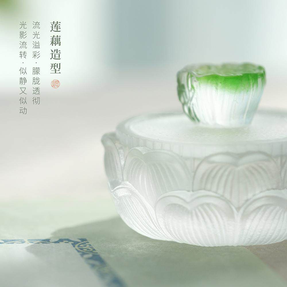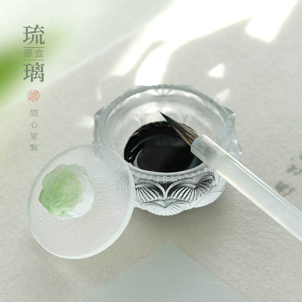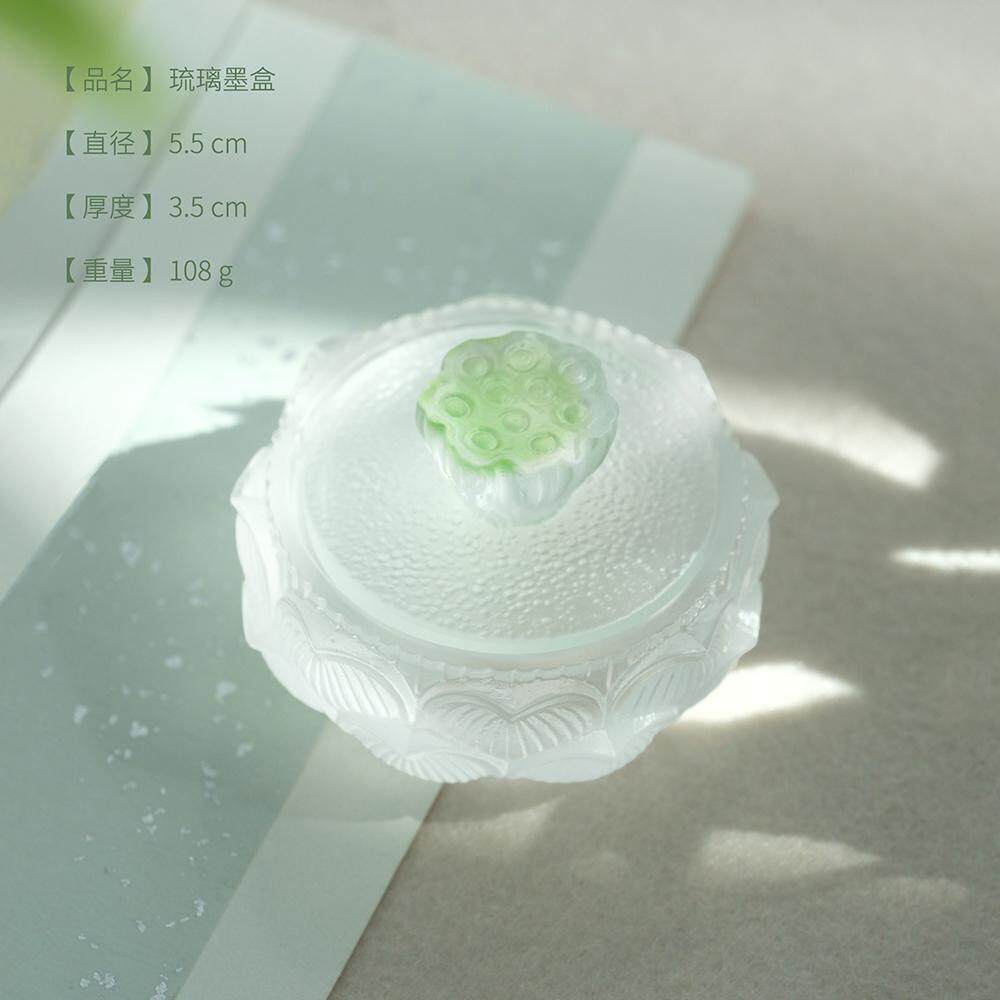 问心堂琉璃墨盒古法琉璃工艺莲藕造型文房好物精致墨碟印泥盒